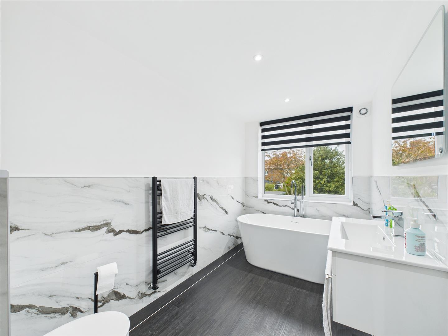 To the first floor is a bright and spacious landing leading to five double bedrooms and family bathroom. Two of the bedrooms benefit from modern en-suite shower rooms as well as two of the bedrooms boasting fitted sliding wardrobes providing additional storage. The tastefully designed bathroom comprises a free standing bath, LED mirror, W.C. hand basin within a fitted vanity unit and a heated towel rail.