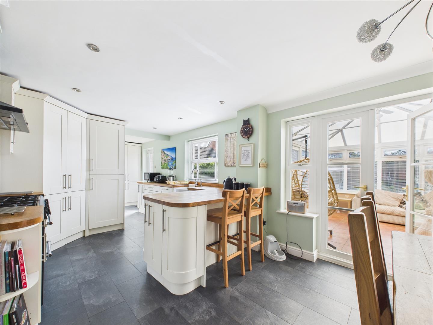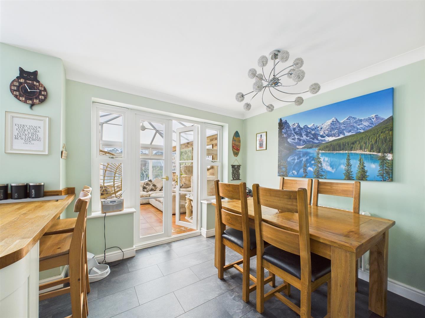 Briefly comprising: Entrance to a welcoming hallway giving access to ground floor rooms and stairs leading to the first floor. To the front is the living room which features a bay window and a fireplace housing an electric fire. The well equipped kitchen/diner has an extensive range of fitted wall and base units including a breakfast bar for seating. Integrated appliances include a dishwasher, extractor fan, full height fridge and space for a Range style oven. Double doors lead to the conservatory which offers views and access to the garden. A separate W.C. is located off the hallway.