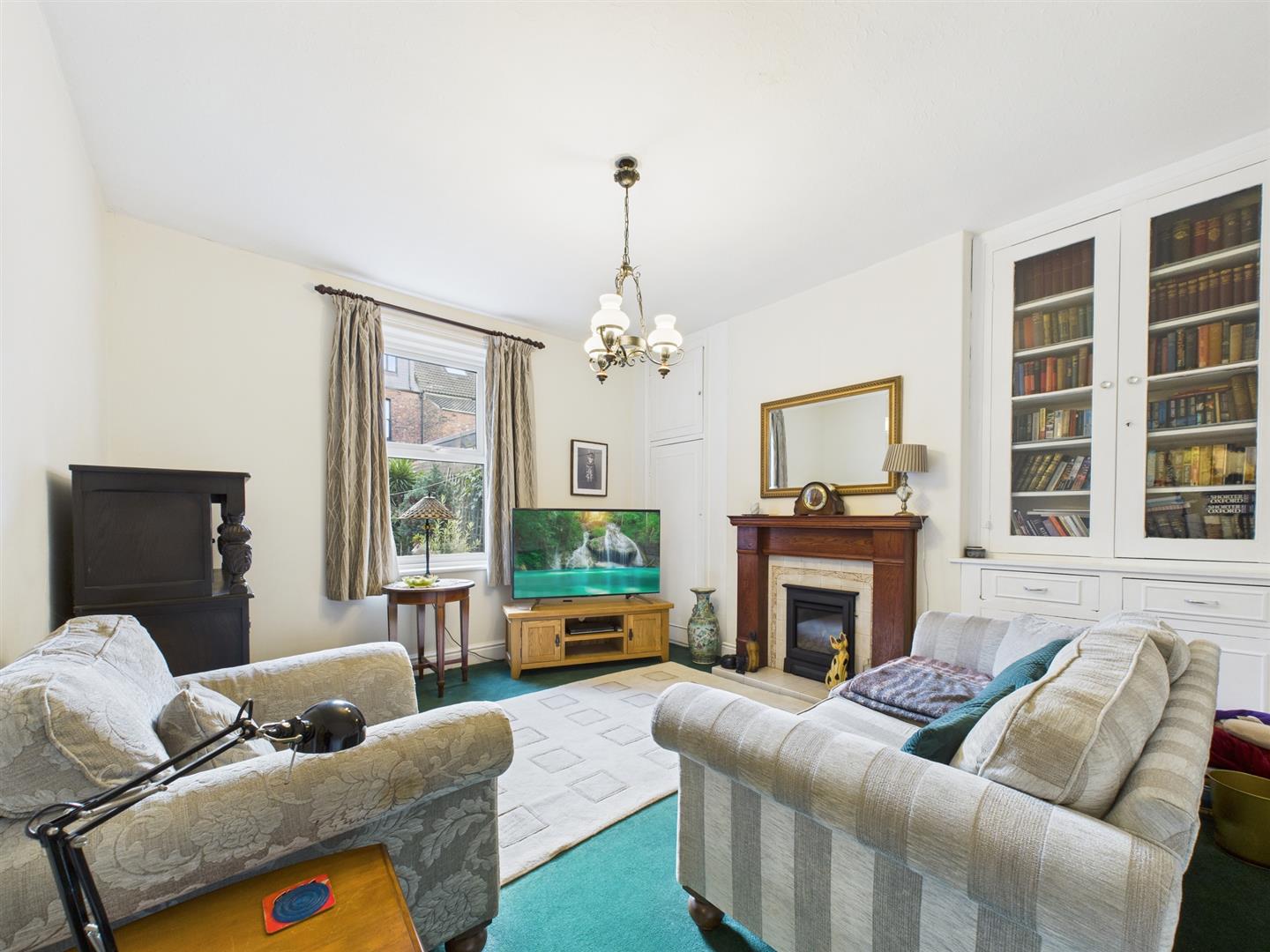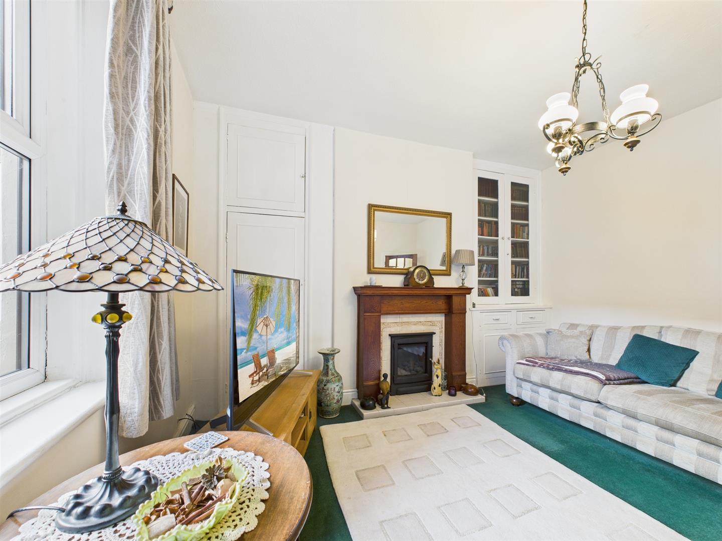 To the rear, a second reception room offers a versatile living space ideal for a family room, playroom or dining area, complete with built-in storage, a feature fireplace with gas fire and a large window overlooking the rear yard.