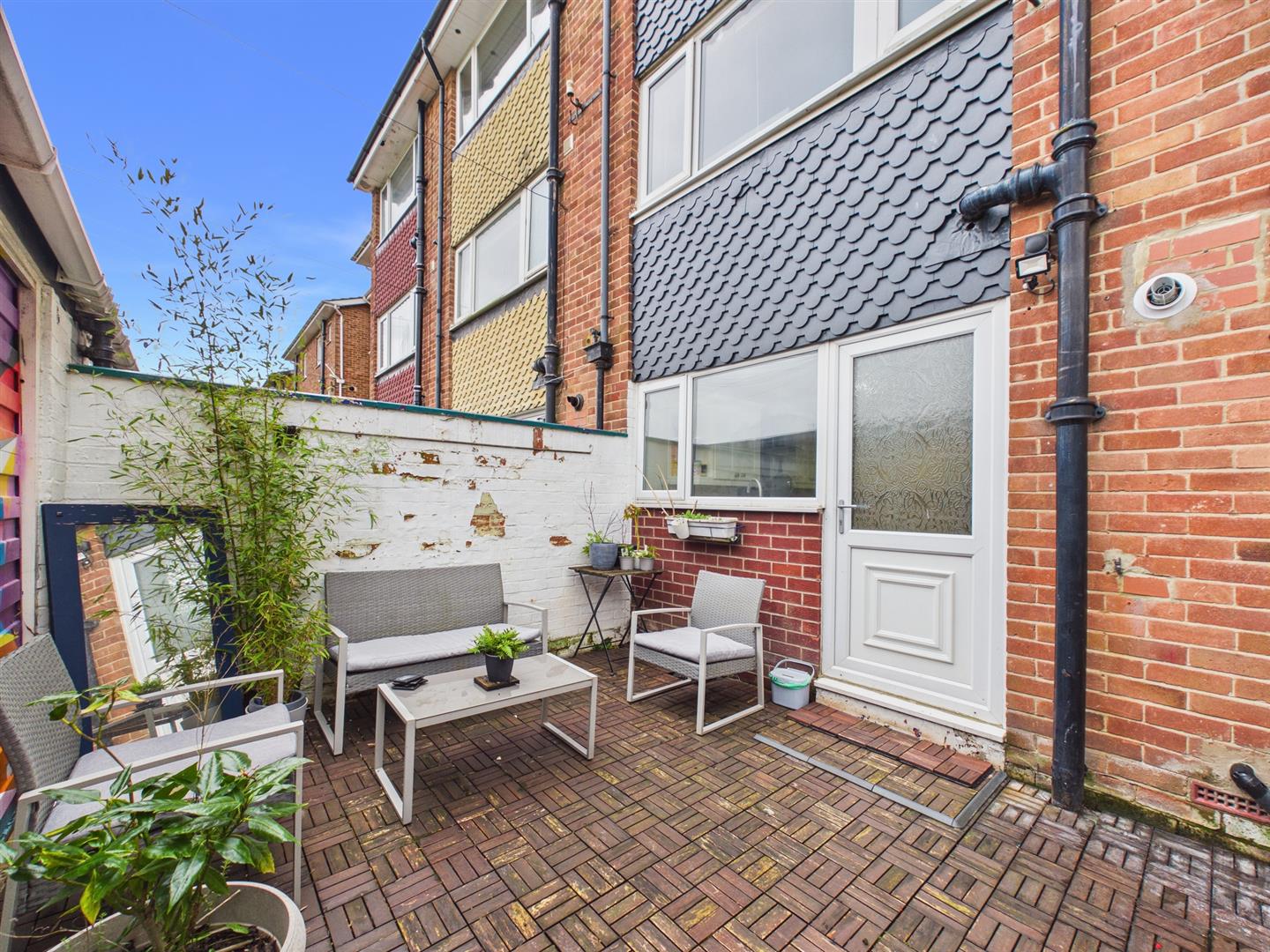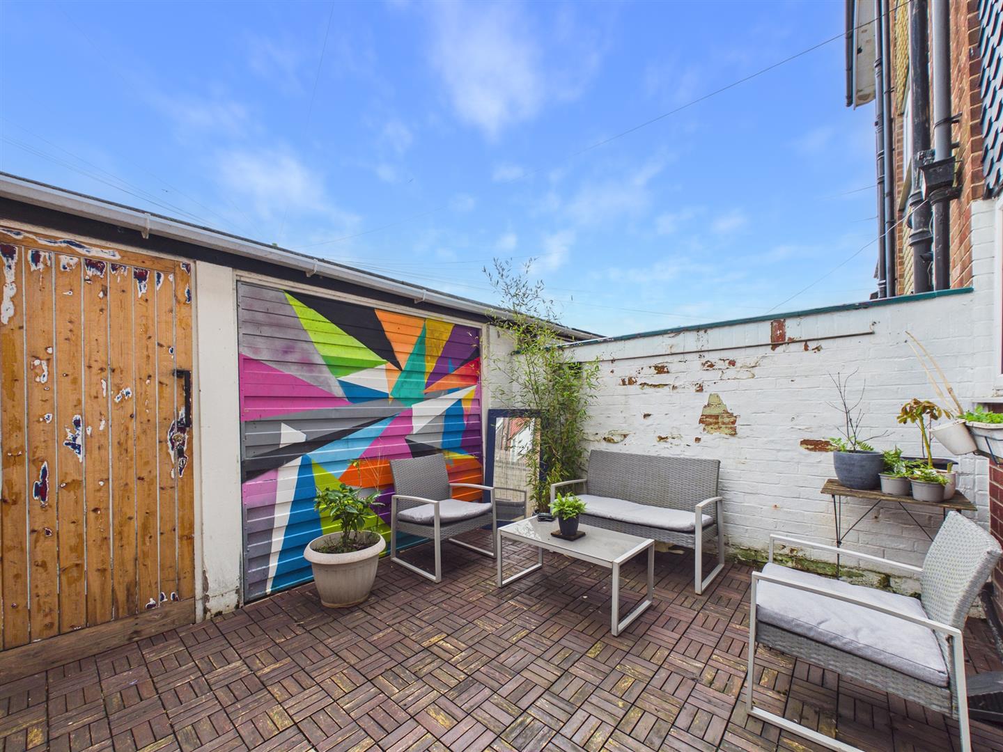 Externally to the rear is a private yard with access to the garage. To the front is a low maintenance terrace which is gravelled and features wrought iron railings, offering a pleasant seating area.