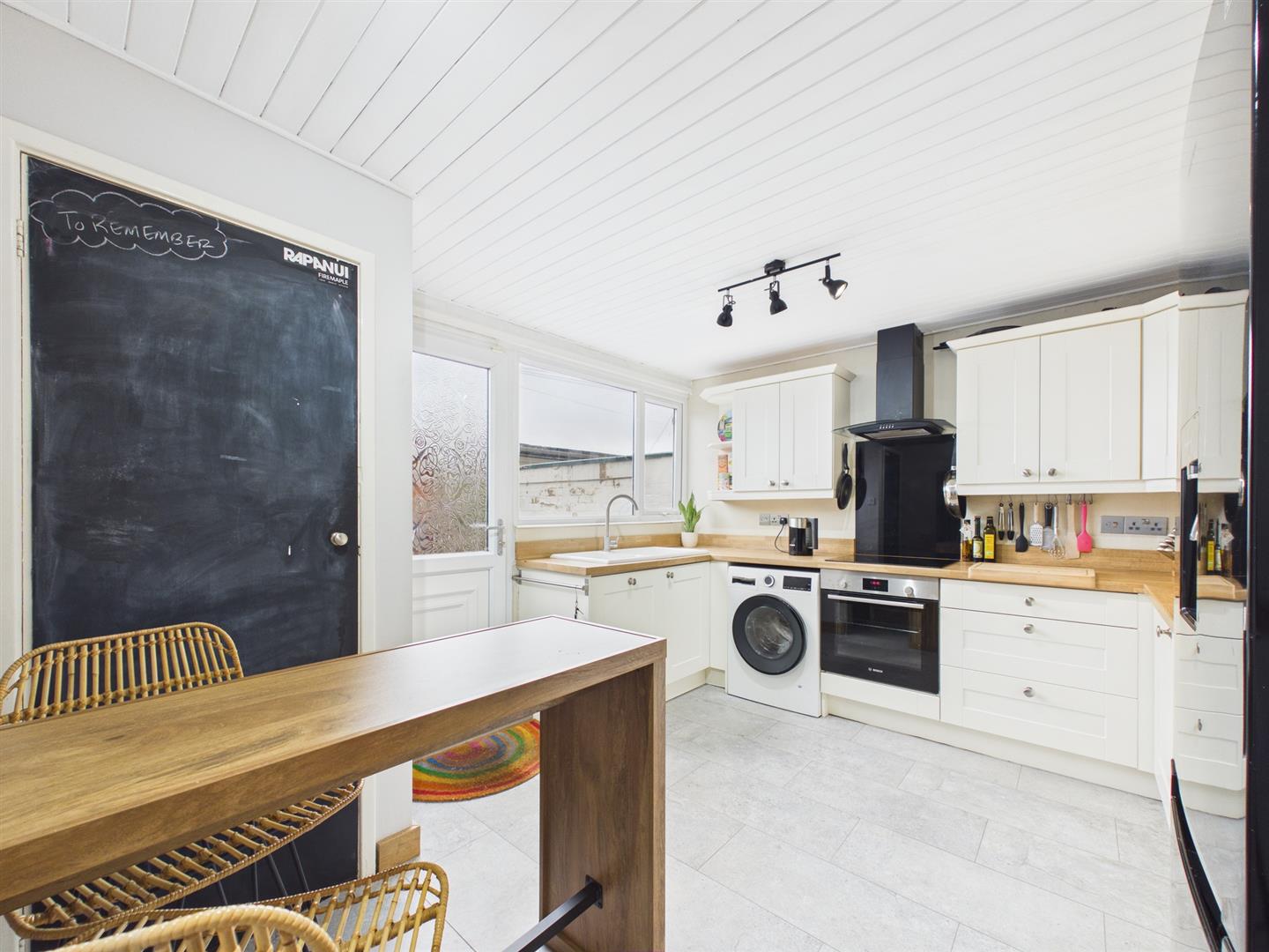 Briefly comprising: Entrance porch leading directly to a well proportioned lounge/diner, boasting sliding patio doors to the front allowing access out to the front terrace. To the rear is the kitchen/breakfast room which has a good range of fitted wall and base units providing plenty of storage, integrated appliances include a Bosch induction hob, oven, extractor fan and dishwasher. There is plumbing for a washing machine and a door offers access out to the rear yard.