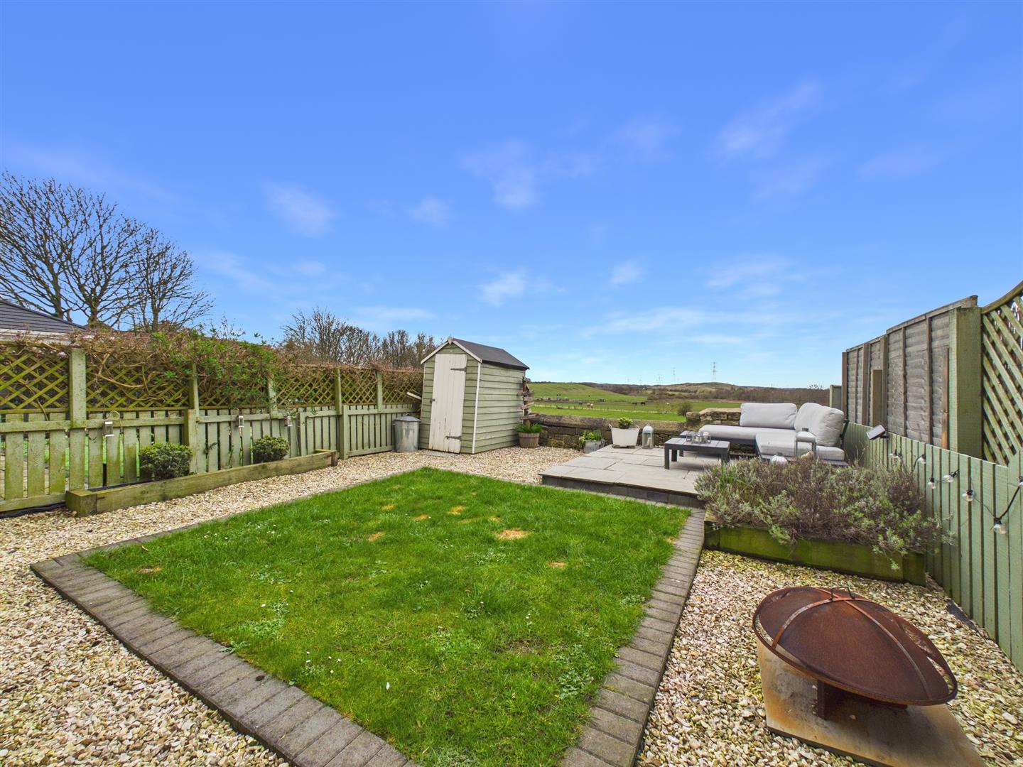 Externally to the rear, the private rear garden is well sized, benefitting from a well maintained lawn to the centre, outlined with gravelled border and raised patio to the corner, ideally situated for enjoying the views. Gate access to the side of the home connects to the front, whereby the single driveway sits adjacent to a small lawn.