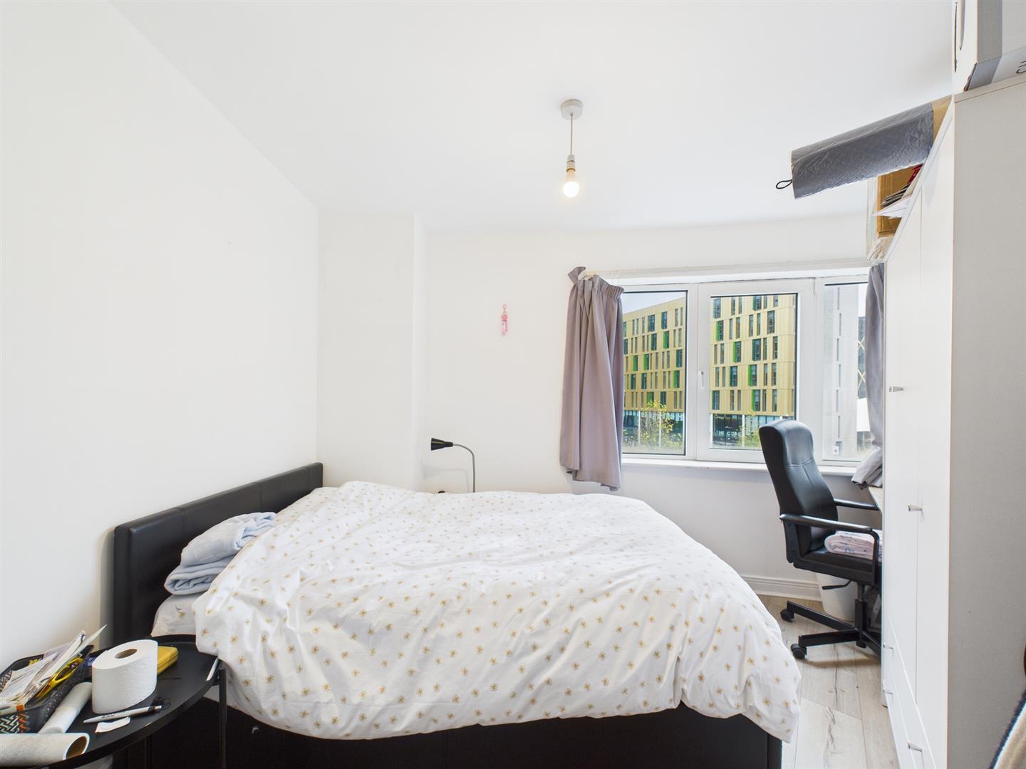 To the front of the apartment, the open plan kitchen/living area sits offering two large windows flooding the space with natural light. The kitchen itself benefits from several fitted wall, base and drawer units, whilst integral appliances include: oven, floating extractor hood, electric hob, dishwasher, under counter fridge and freezer, finished with space for a washing machine. A convenient breakfast bar provides dining space.