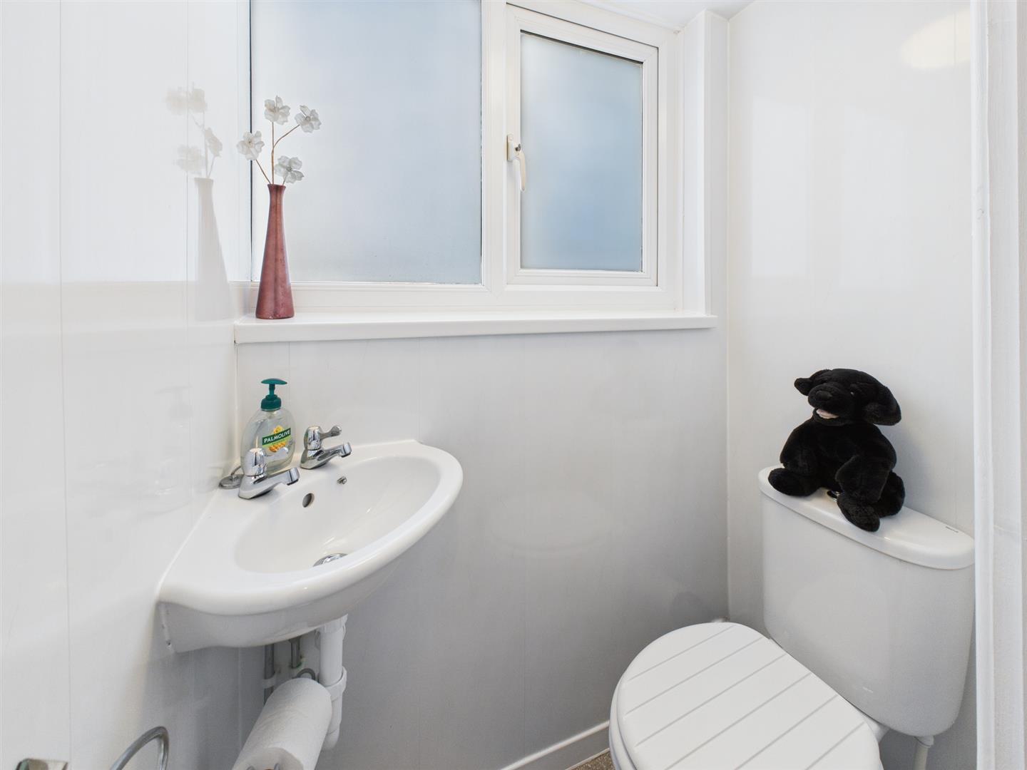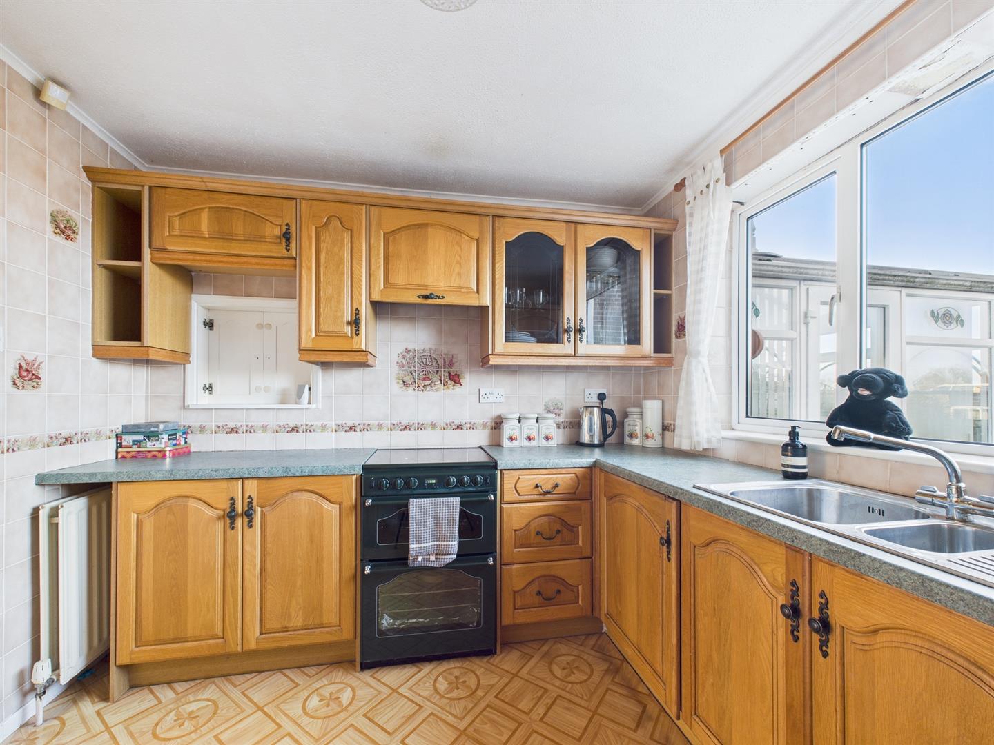 The kitchen has fitted wall and base units with space for a freestanding oven. A handy utility area provides additional storage, plumbing for a washing machine, access to the garage, as well as a door to a separate W.C.