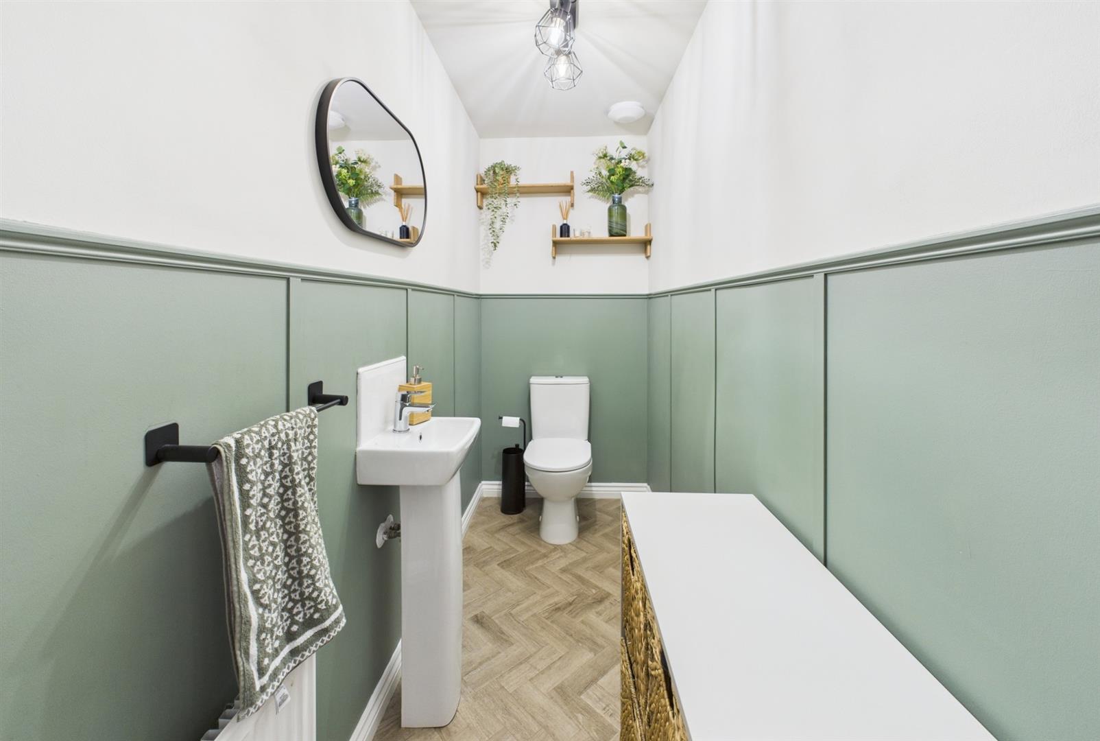 Accessed from the hallway is a spacious cloaks room providing storage with a W.C. and hand basin.
