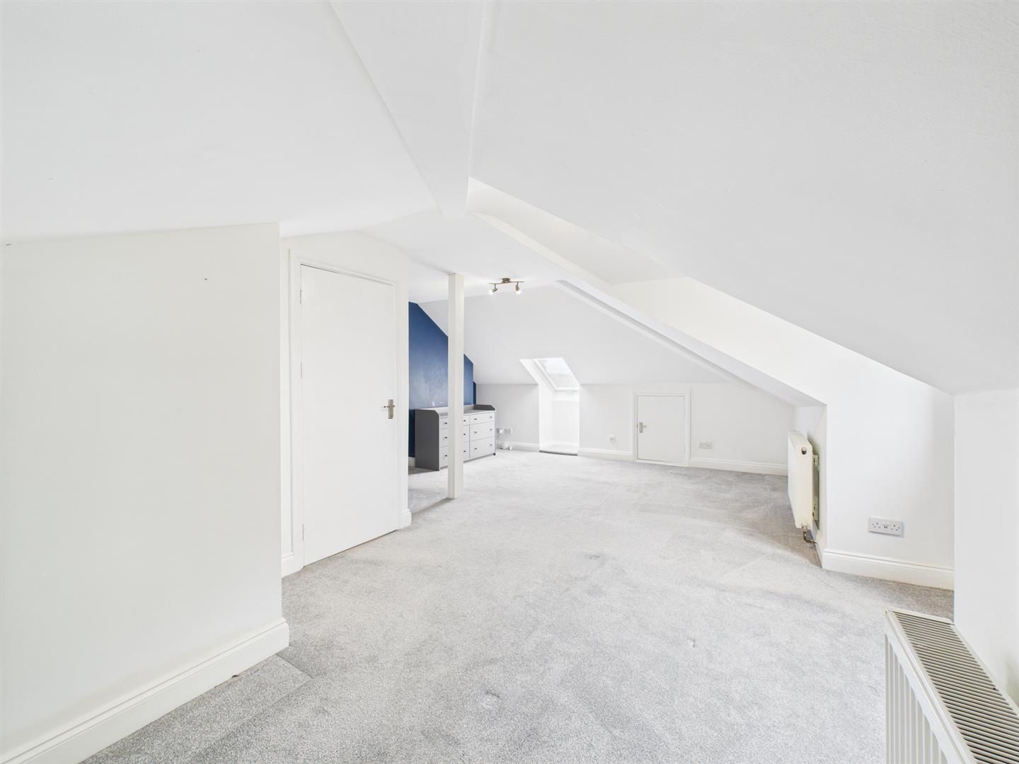 Up to the second floor, another landing leads to the fifth and final bedroom and a further bathroom. Converted by previous owners, the fifth bedroom is vast in size with a wraparound layout, incorporating two Dorma style windows. The second floor bathroom is furnished with a bath, pedestal wash basin and W.C.