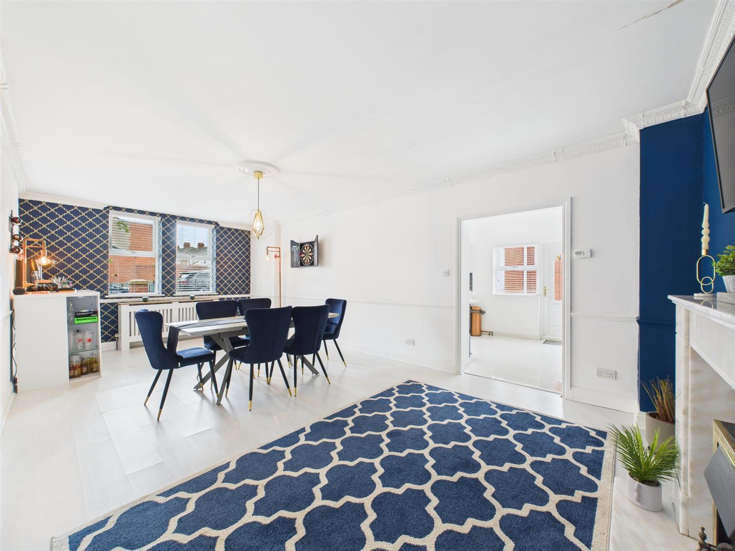 Across the hallway, the second reception space is currently utilised as a dining room. Lengthy in design, the dining room can accommodate a multitude of needs and layouts. From here, the kitchen can be accessed.