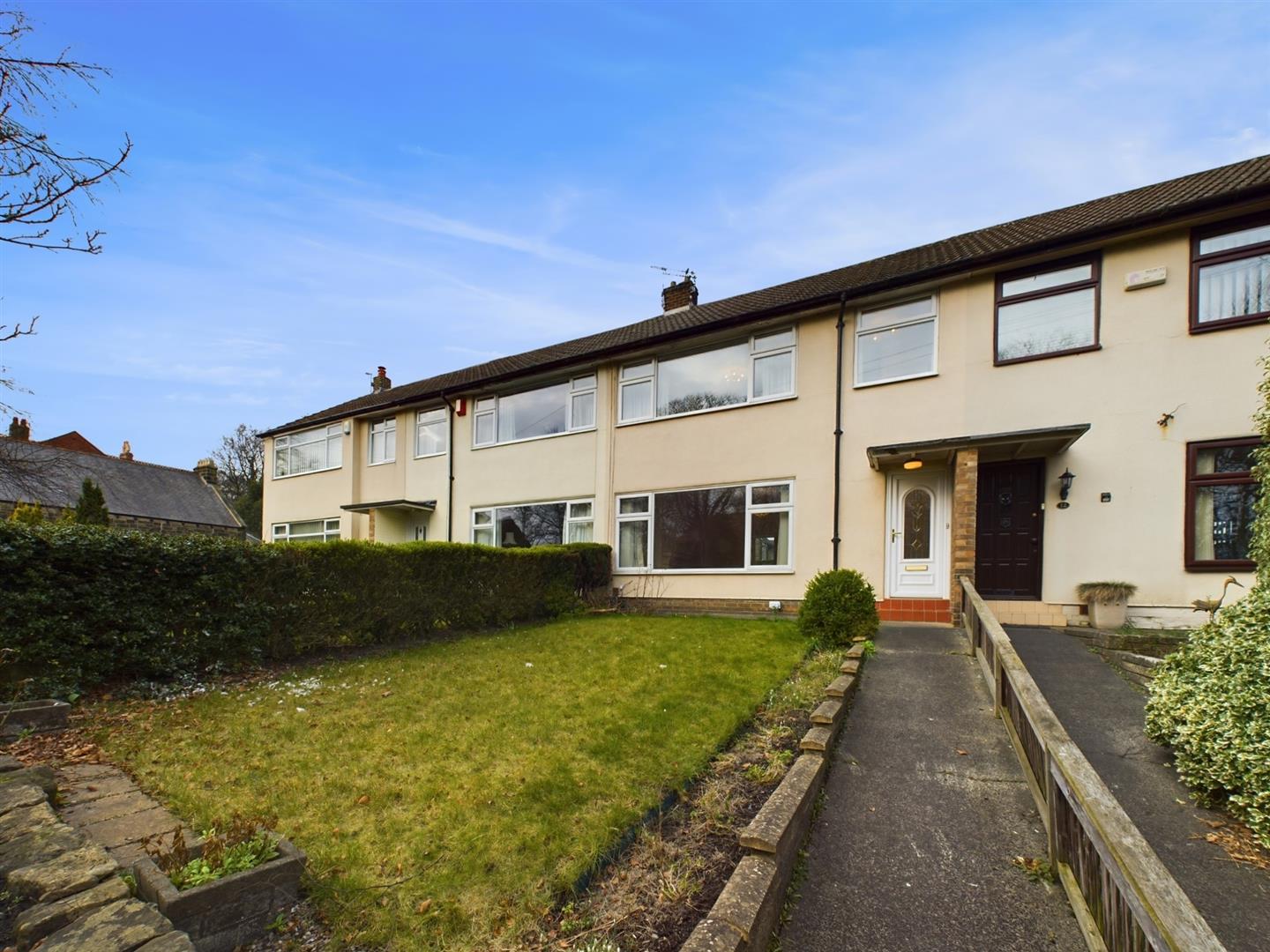 Externally, a paved rear garden offers a low maintenance space to enjoy. Gate access leads out to the detached garage with allocated parking. To the front of the home, a considerable lawned garden is raised above street level, aside a small staircase and pathway leading to the front door.