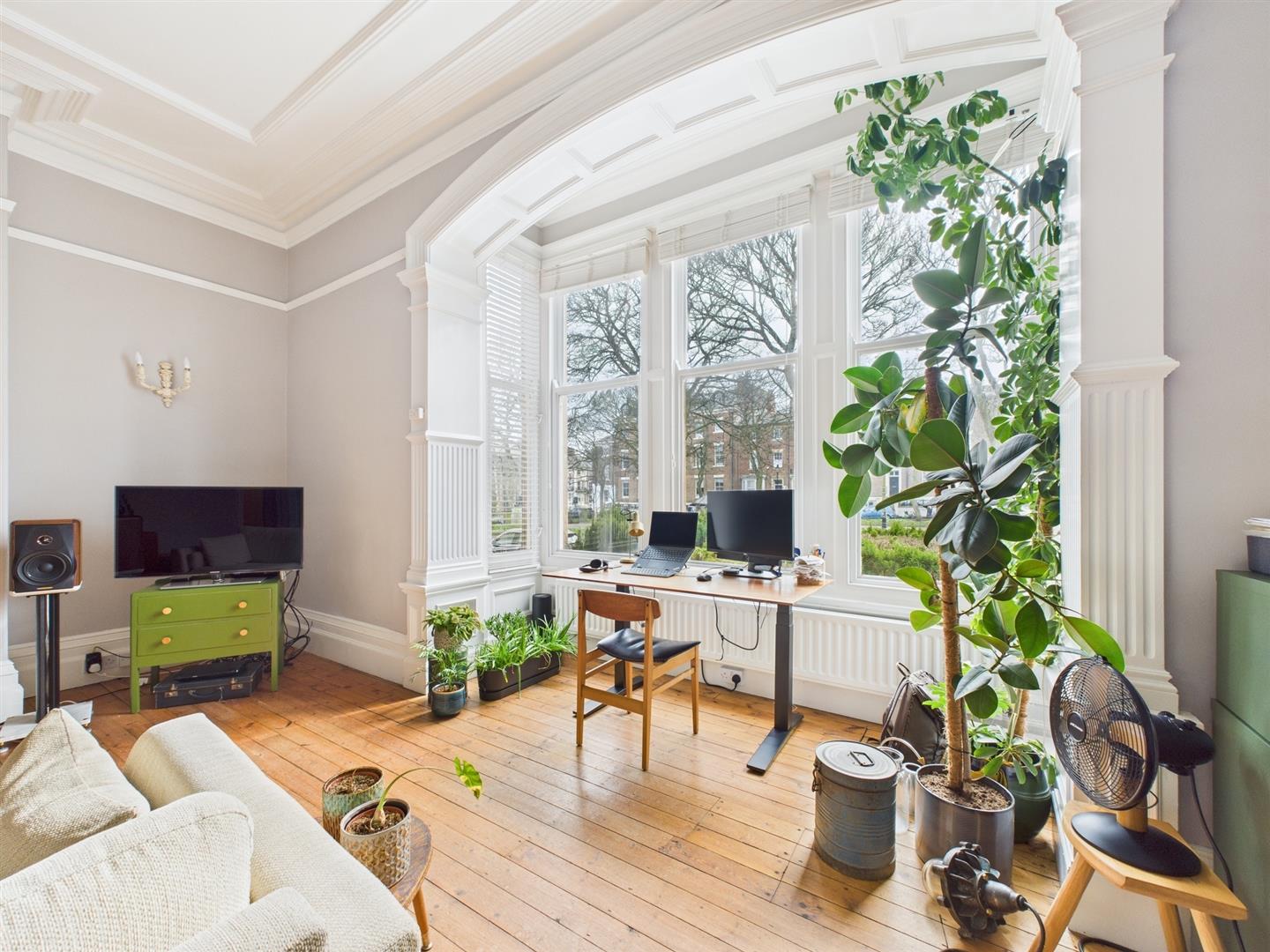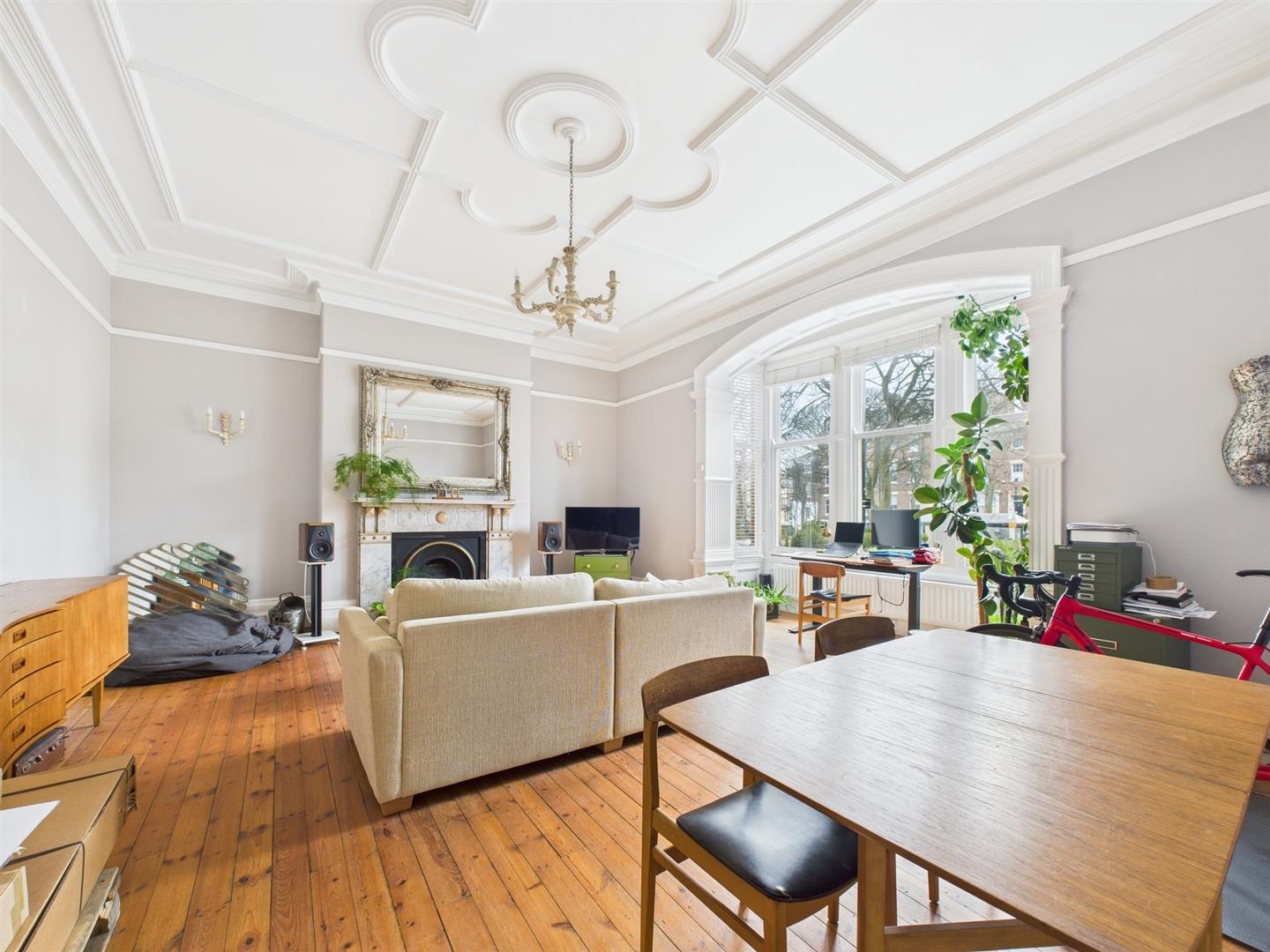Briefly comprising: Secure communal entrance to a private hallway giving access to all rooms. The impressive lounge/diner offers a wonderful space featuring a large bay window which overlooks the front of the property. Further period features include high ceilings, decorative coving, picture rail, beautiful fireplace and stripped floor boards. The kitchen has fitted wall and base units which includes an integrated gas hob, double oven, extractor fan and dishwasher. A door from the kitchen gives direct access to the garage where there is an electric door. There are two double bedrooms, one of which is particularly generous in size and boasts an en suite shower room. The main bathroom comprises a bath with shower over, hand basin and W.C. This property benefits from multiple built in cupboards providing storage with the addition of a good sized cellar.