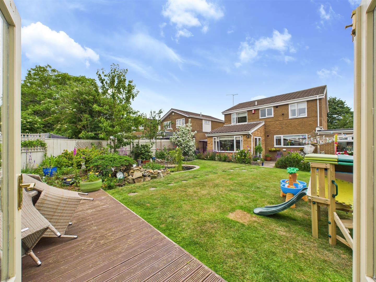 Externally the impressive south facing rear garden is tiered, presenting an initial patio, ample lawn incorporating a fish pond and framed with mature shrub borders, and raised decking to the far side. The garden's southerly aspect welcomes the sun throughout the day and late into the evening. The current owners have erected a good size summer house which has been converted to use as a sheltered external entertainment area. The front of the home can be accessed via a private gate to the side of the property, whereby the paved driveway offers off street parking for two cars, complete with a further lawn and shrub borders.