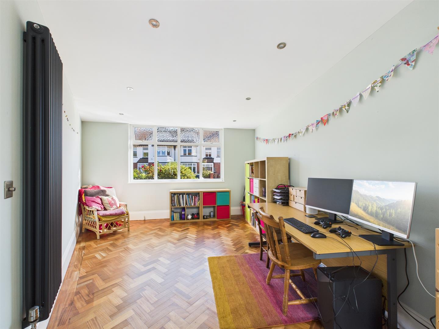 To the first floor is a spacious landing leading to all four bedrooms, bathroom and stairs to the loft space. The main double bedroom is particularly generous in size, featuring a large bay window to the front and fitted wardrobes. The second bedroom is also a good sized double with fitted wardrobes providing additional storage. The family bathroom comprises a corner bath, separate shower, hand basin and heated towel rail. There is a separate W.C.