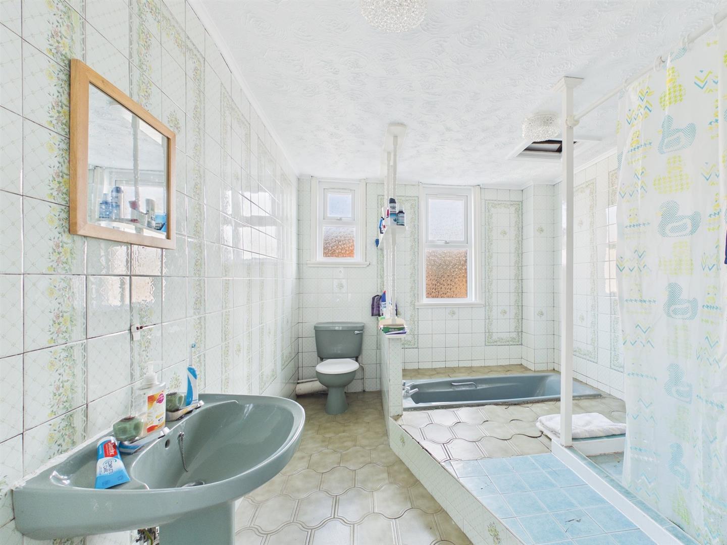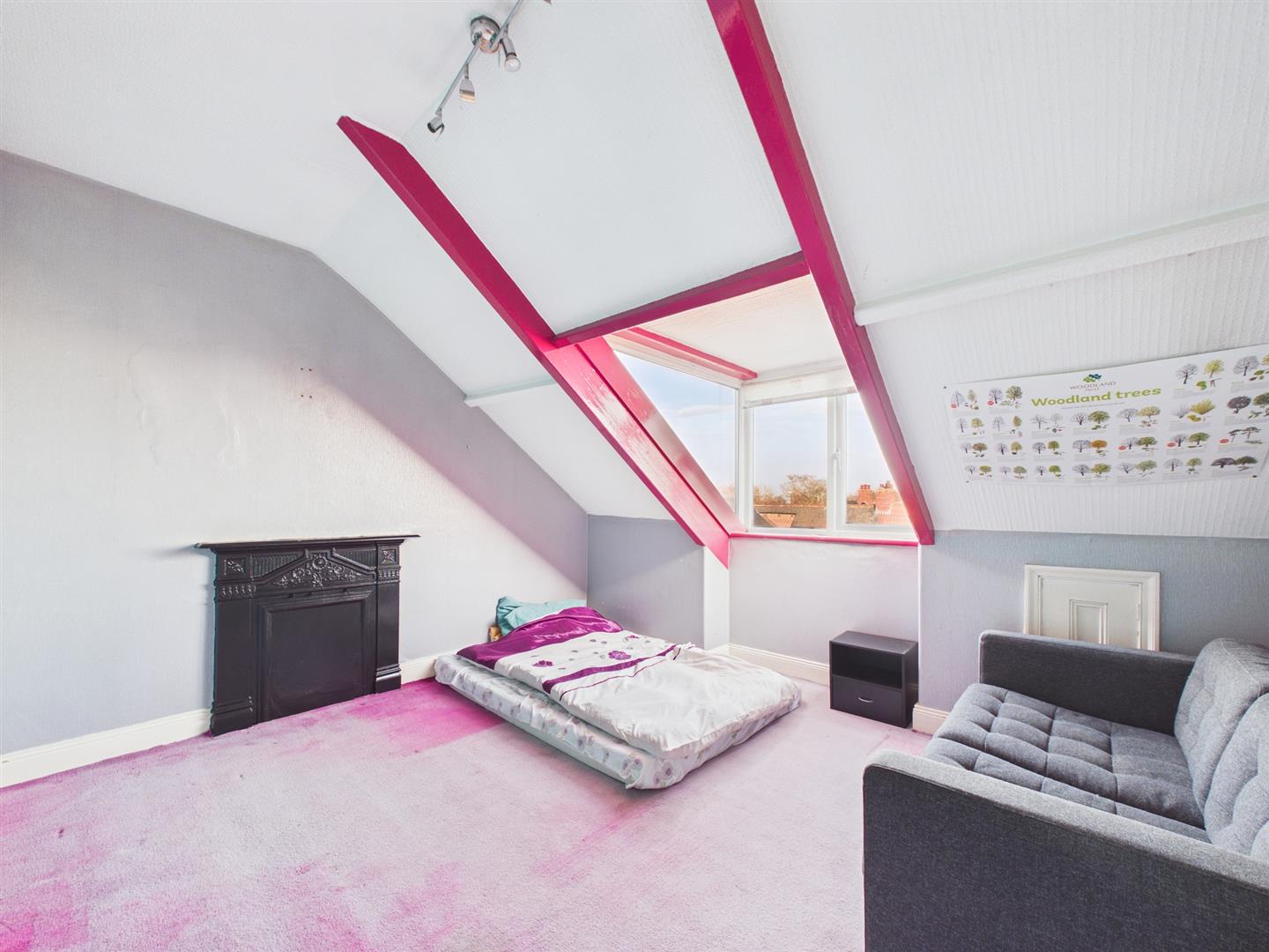 To the first floor is a split landing offering access to three bedrooms and bathroom. Two of the bedrooms are generous in size, one has a bay window to the front and the other features an original fireplace. The spacious bathroom comprises a bath, walk in shower, hand basin and W.C.