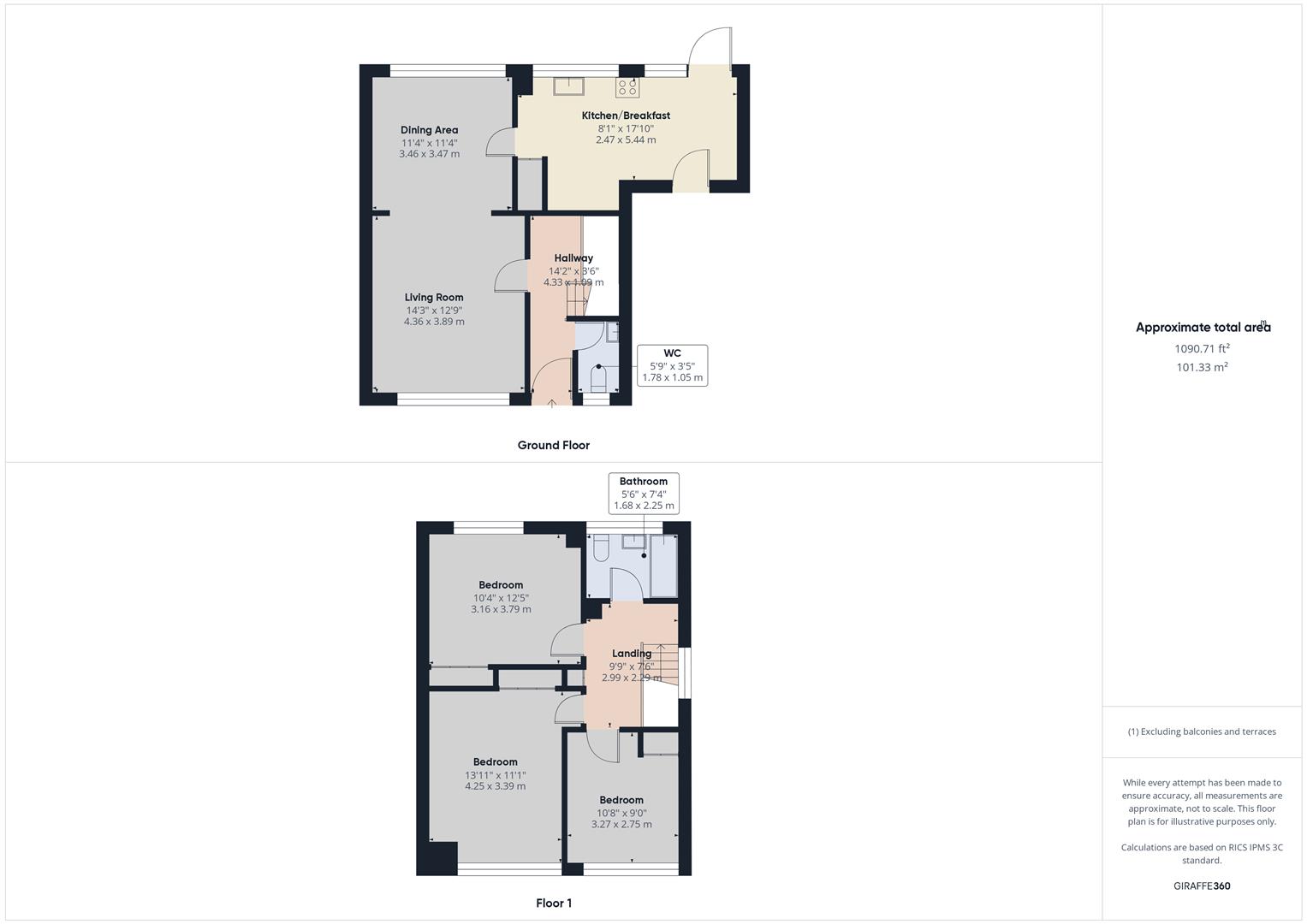 Bedroom One 4.25m x 3.39m (13'11" x 11'1")