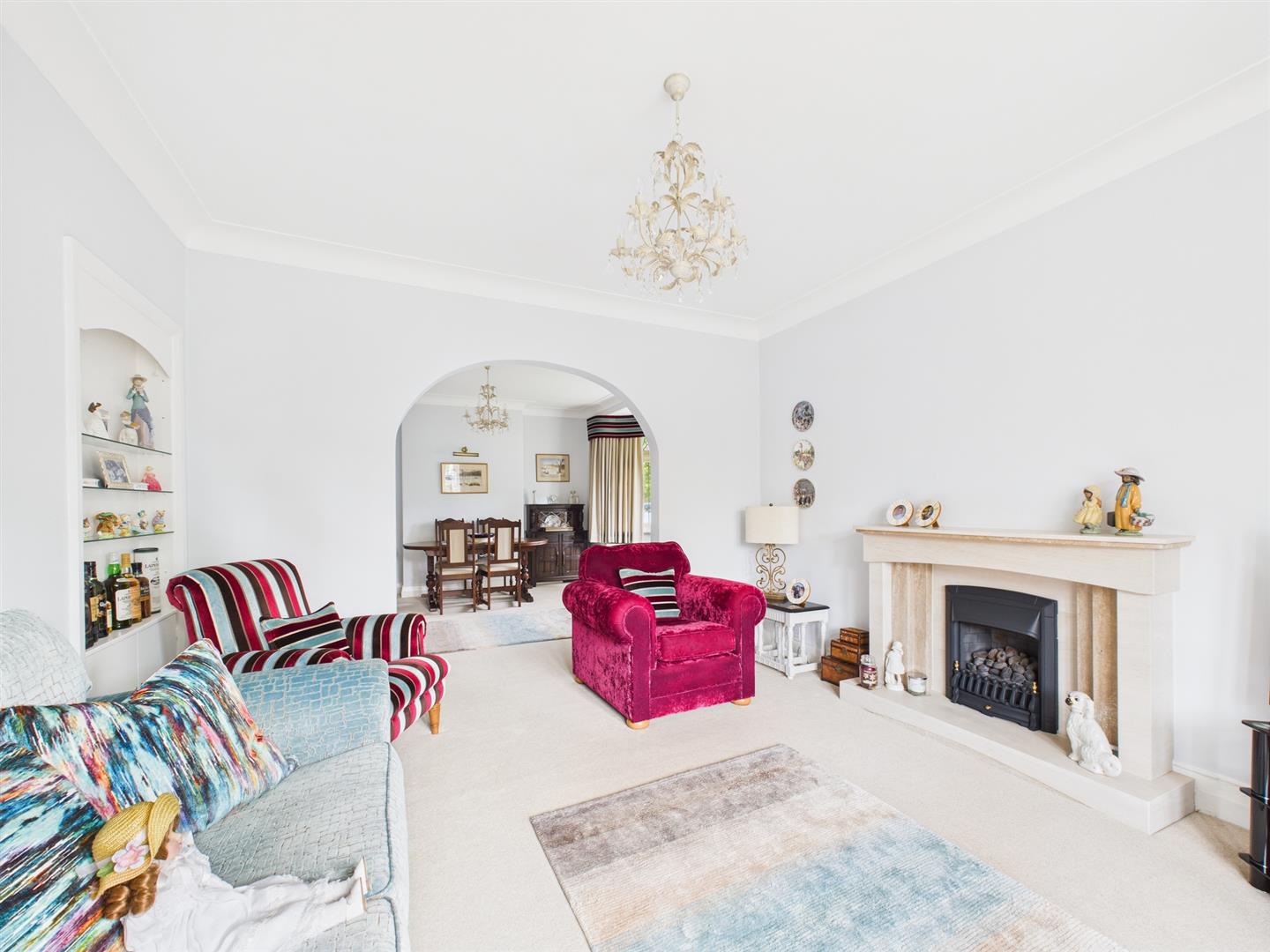 Briefly comprising: Entrance to a bright and welcoming hallway giving access to all ground floor rooms and stairs leading to the first floor. The living room features a beautiful bay window overlooking the front of the property, an attractive fireplace housing a gas fire and an archway to the dining room. This well proportioned room also features a bay window.