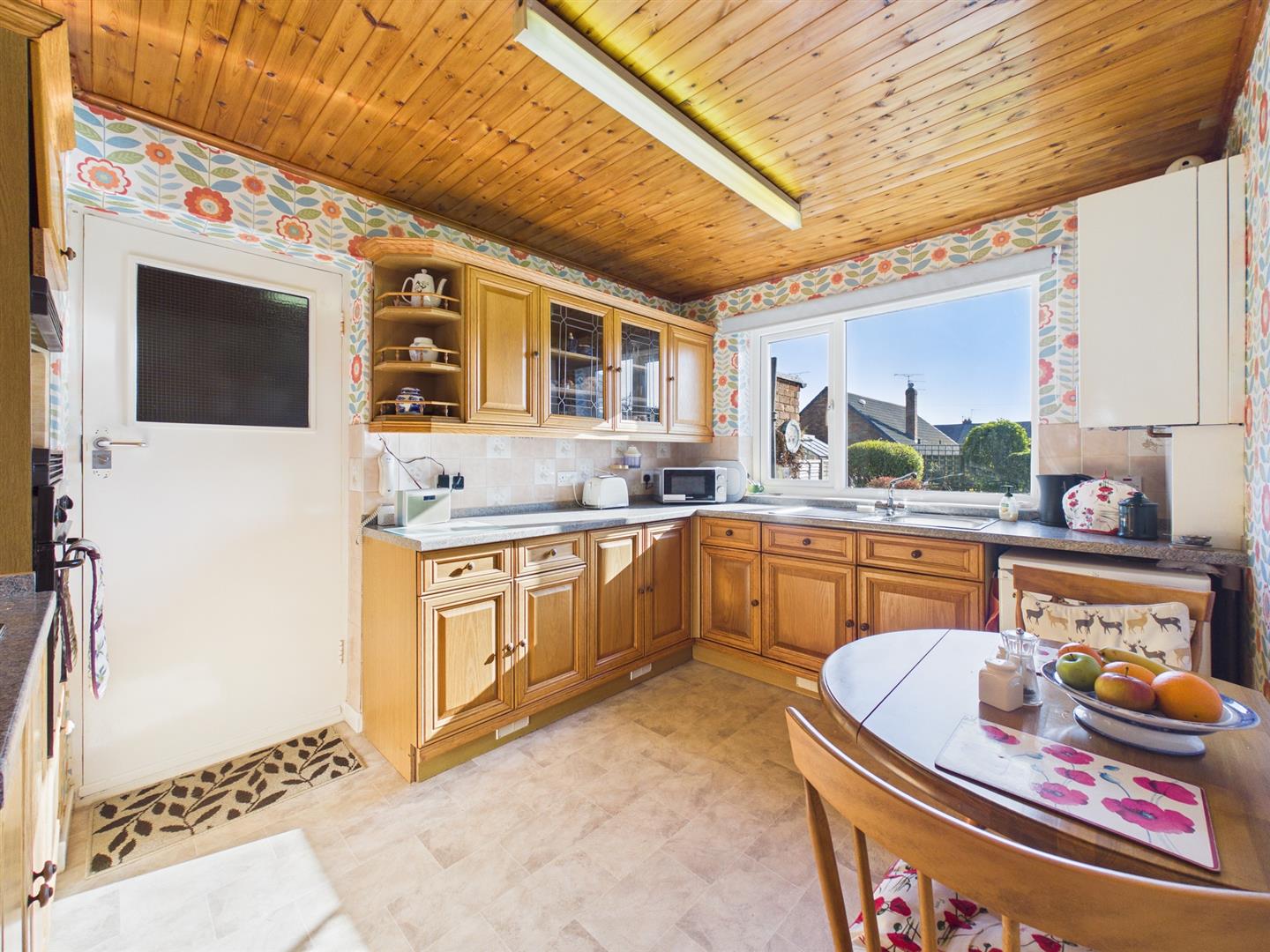 Sitting adjacent, the breakfasting kitchen is fully equipped with an array of wood effect wall, base and drawer units and incorporates an oven, hob and extractor. In addition to designated under counter space for appliances and space for a breakfast table for dining. From here, the garage can be accessed.
