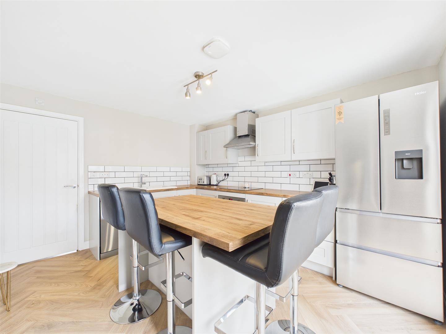 Briefly comprising: Entrance hallway giving access to the living room and stairs leading to the first floor. Overlooking the front of the property is a good sized living room offering a comfortable space with a built in storage cupboard. The well equipped kitchen/breakfast room has a modern range of fitted wall and base units including an island providing storage as well as seating. Integrated appliances include an electric hob, oven, extractor fan, plumbing for a dishwasher and space for a fridge/freezer. A handy utility area offers storage as well as plumbing for a washing machine, there is access to a separate W.C.