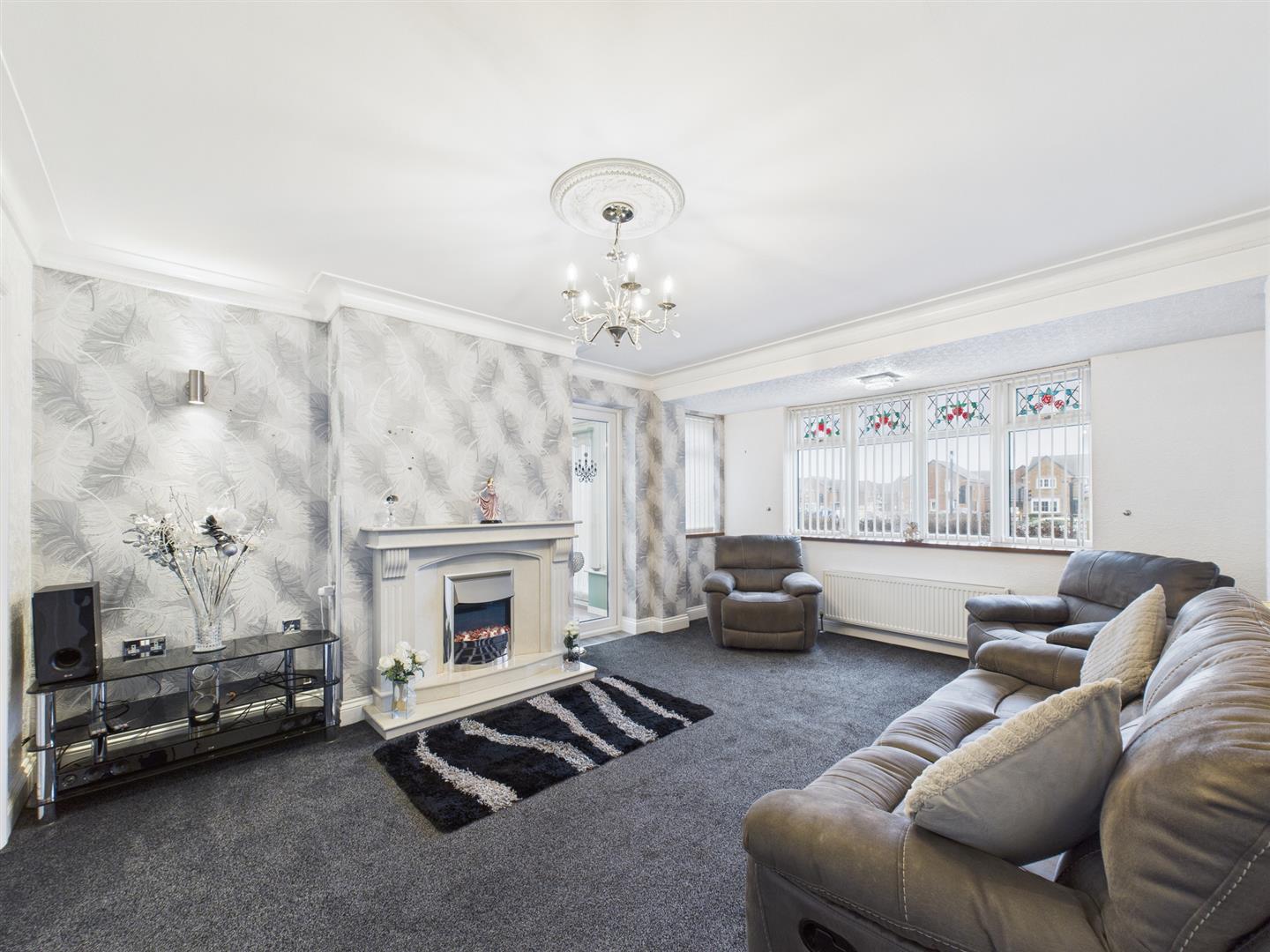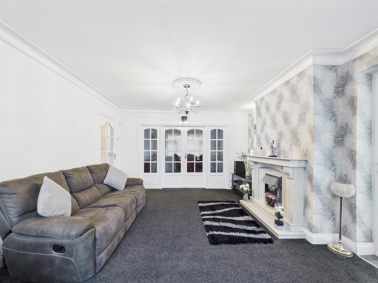 The bright and spacious lounge overlooks the front of the property and features a large window, attractive feature fireplace with electric fire, decorative coving and a ceiling rose. Double doors open into the dining room which benefits from matching coving and ceiling rose. This versatile second reception room is ideal for family dining and offers additional space suitable for a family room or playroom.