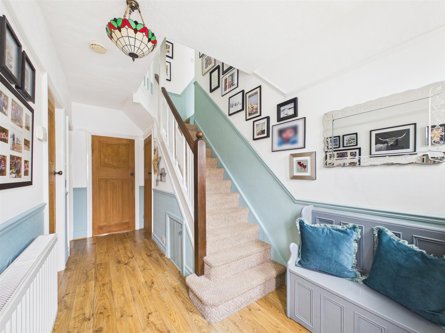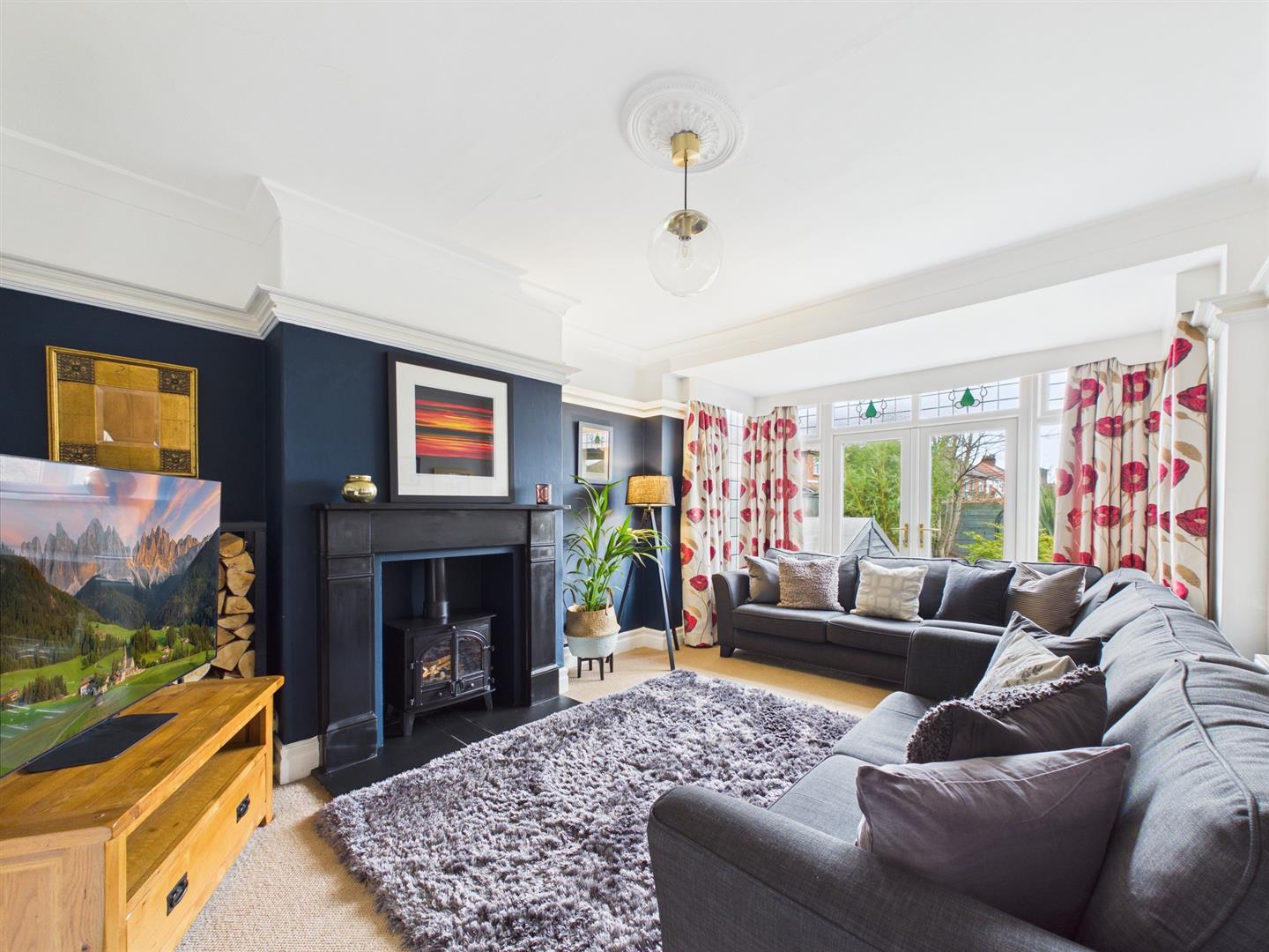 Briefly comprising: Entrance hallway giving access to all ground floor rooms and stairs leading to the first floor. Overlooking the front of the property is a bright and airy lounge, featuring a decorative fireplace, built in alcove shelving and a bay window. To the rear is an attractive living room, a large box bay has double doors offering access out to the rear garden and a fireplace housing a log burning stove.