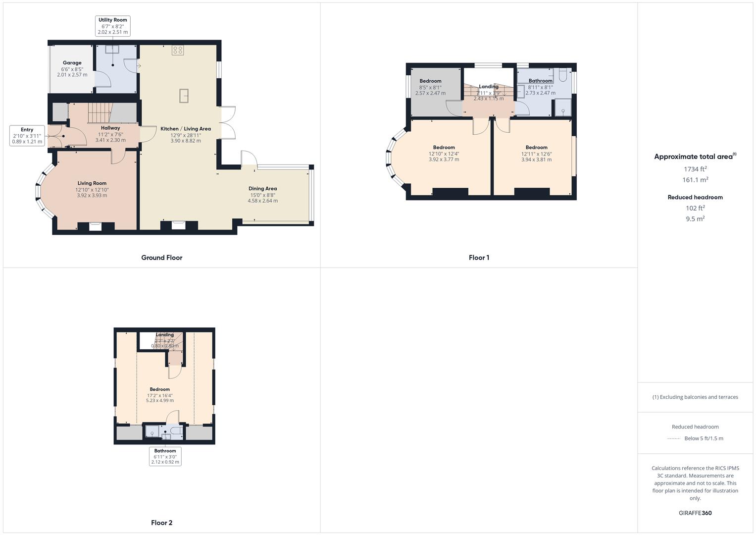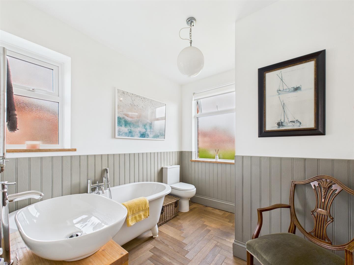 To the first floor are three good sized bedrooms, two of which are doubles and one benefits from fitted wardrobes. The stylish family bathroom comprises a free standing bath, separate step in shower, hand basin, W.C. and heated towel rail. To the top floor is a further bedroom which offers a great amount of space as well as an en-suite shower room with hand basin and W.C.