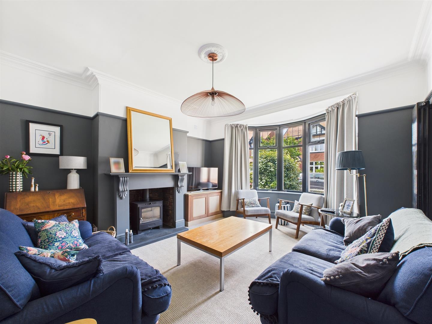Briefly comprising: Entrance vestibule to a welcoming hallway. Overlooking the front of the property is the well proportioned living room featuring a bay window and fireplace housing a log burning stove. To the rear is an impressive open plan kitchen/diner/family room perfect for family living and entertaining friends. This beautiful light and airy space provides a well equipped kitchen, comfortable sitting area and dining area overlooking the garden. There are a good range of fitted wall and base units as well as a central island offering additional storage, sink, dishwasher and seating. There is space for a Range style oven and American fridge/freezer. A handy utility room offers additional storage, plumbing for a washing machine, tumble dryer and a sink. A door gives access to the garage.