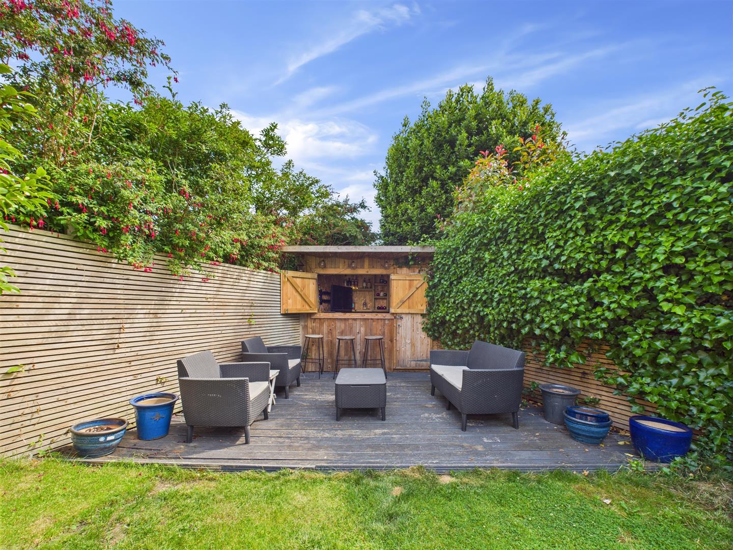 Externally to the rear is a private garden laid to lawn with two patio areas and a bar with electric. To the front is a garden, driveway parking for two cars and a garage.