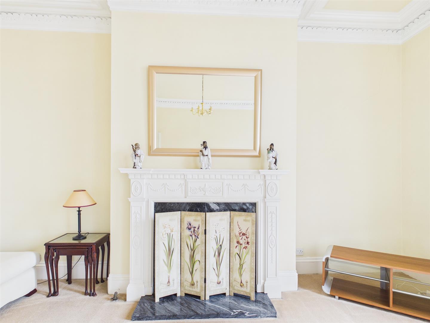 Briefly comprising: Secure communal entrance to a private hallway with stairs to the first floor landing. Overlooking the front of the property is a bright and airy living room, featuring high ceilings, decorative coving, two large windows and fireplace. A further reception room to the rear offers a generous amount of space, also boasting high ceilings, decorative coving and a fireplace.