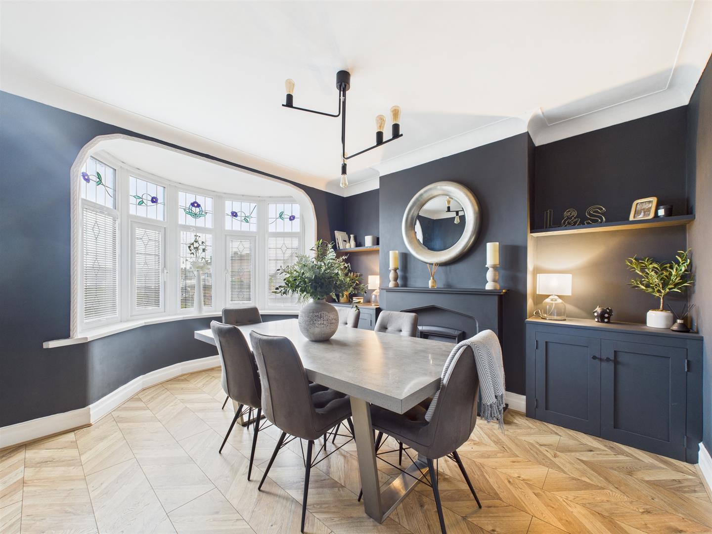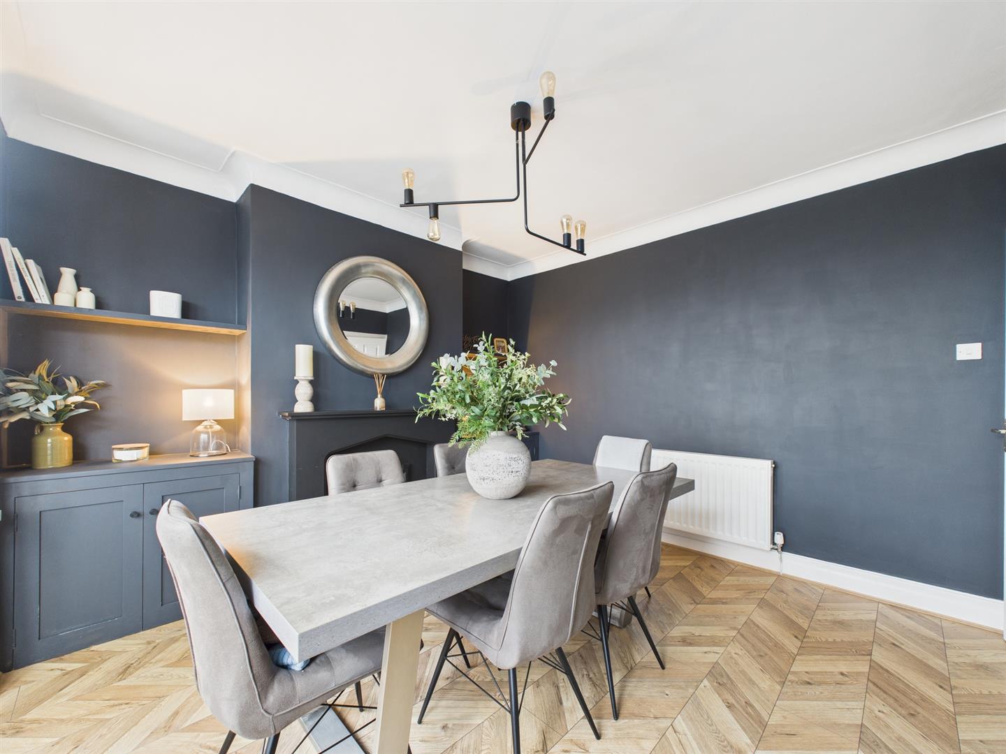 Briefly comprising: Entrance to an inviting hallway which gives access to all ground floor rooms and stairs leading to the first floor. Overlooking the front of the property is the dining room, tastefully designed featuring a bay window, attractive fireplace, built in alcove storage and shelving.