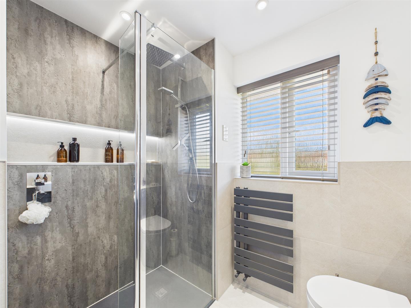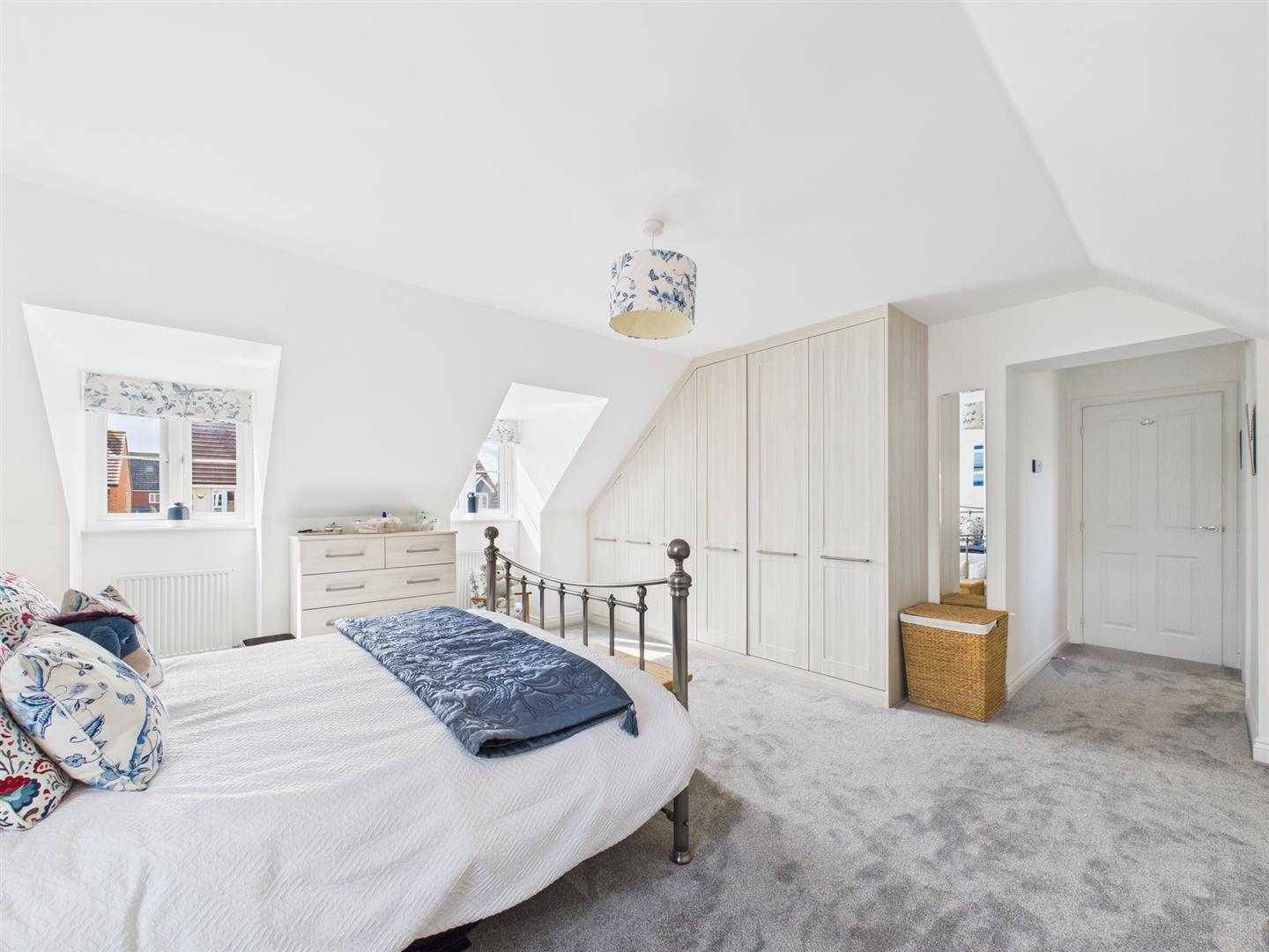 To the first floor is a bright and airy landing leading to all four double bedrooms and bathroom. The main bedroom is extremely generous in size, featuring quality fitted wardrobes and drawers providing plenty of storage. The recently refurbished en-suite is stylishly designed and comprises a walk in shower, hand basin and W.C. housed within a fitted vanity unit and a heated towel rail. All bedrooms benefit from quality fitted wardrobes, the second bedroom also boasts an en-suite shower room. The family bathroom comprises a bath, shower over, hand basin, W.C. and heated towel rail.