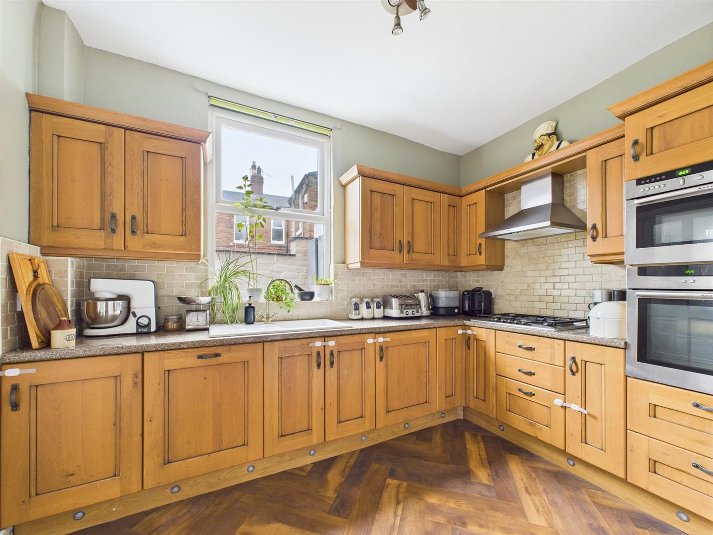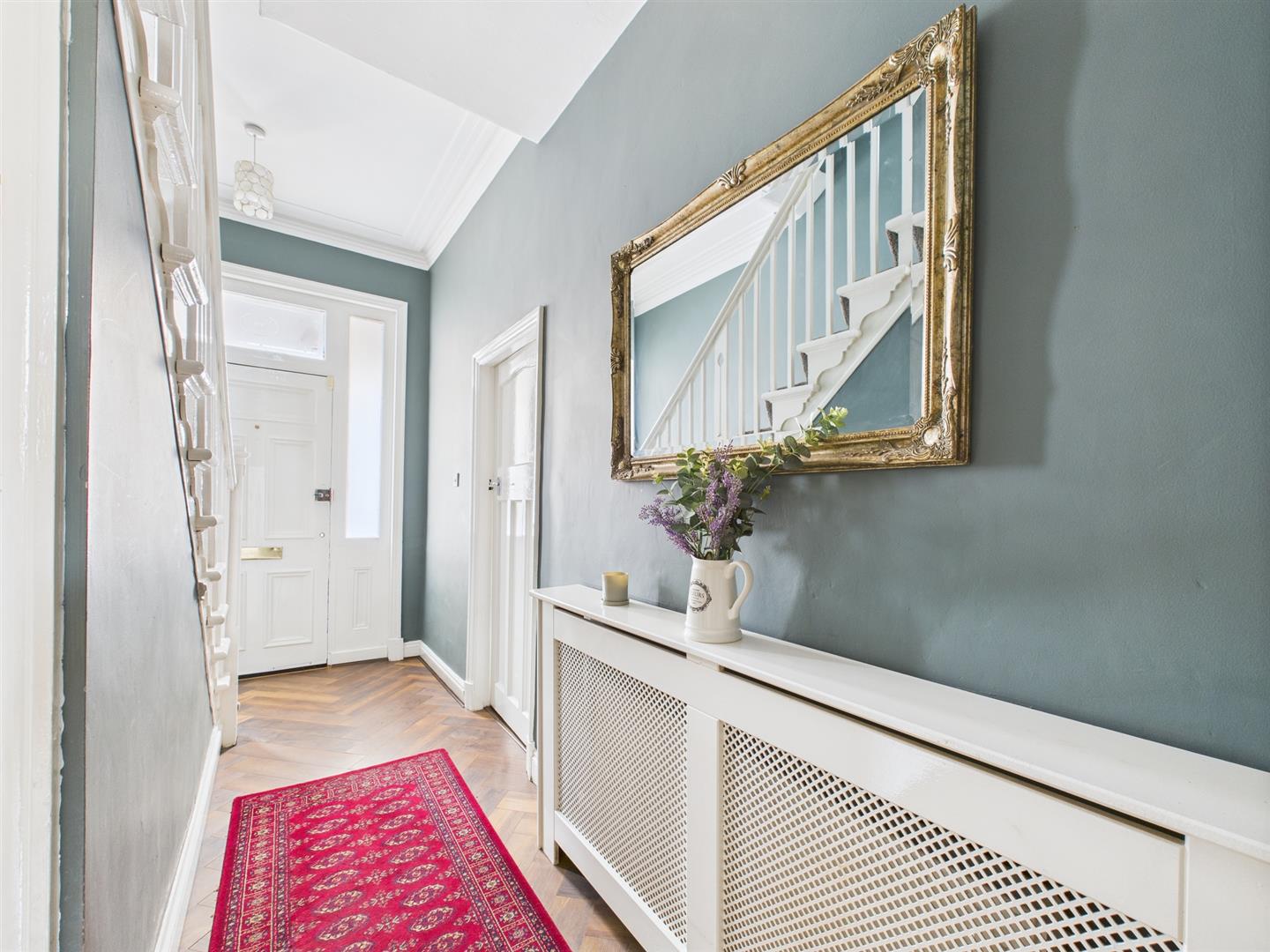 Briefly comprising: Entrance to a welcoming hallway which gives access to all ground floor rooms and stairs leading to the first floor. To the front are two generous sized reception rooms, both featuring large bay windows, high ceilings, decorative coving and attractive fireplaces. To the rear is a well equipped kitchen which has fitted wall and base units, integrated appliances include a five ring gas hob, Neff double oven, extractor hood, fridge and dishwasher. A handy utility room provides additional storage, plumbing for a washing machine, tumble dryer and access out to the rear yard.