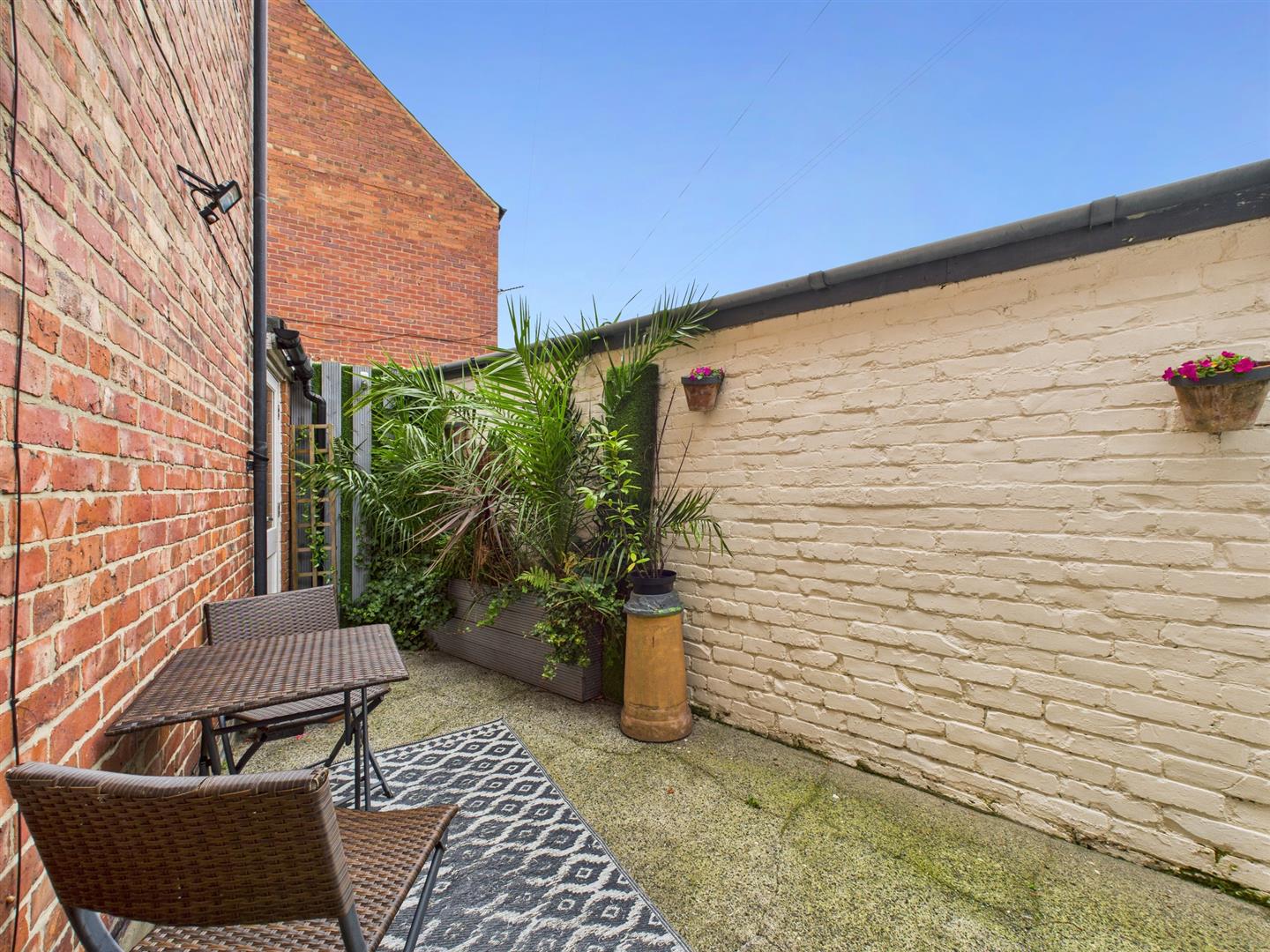 Externally to the rear is a private yard providing a pleasant seating area and access to the garage.
