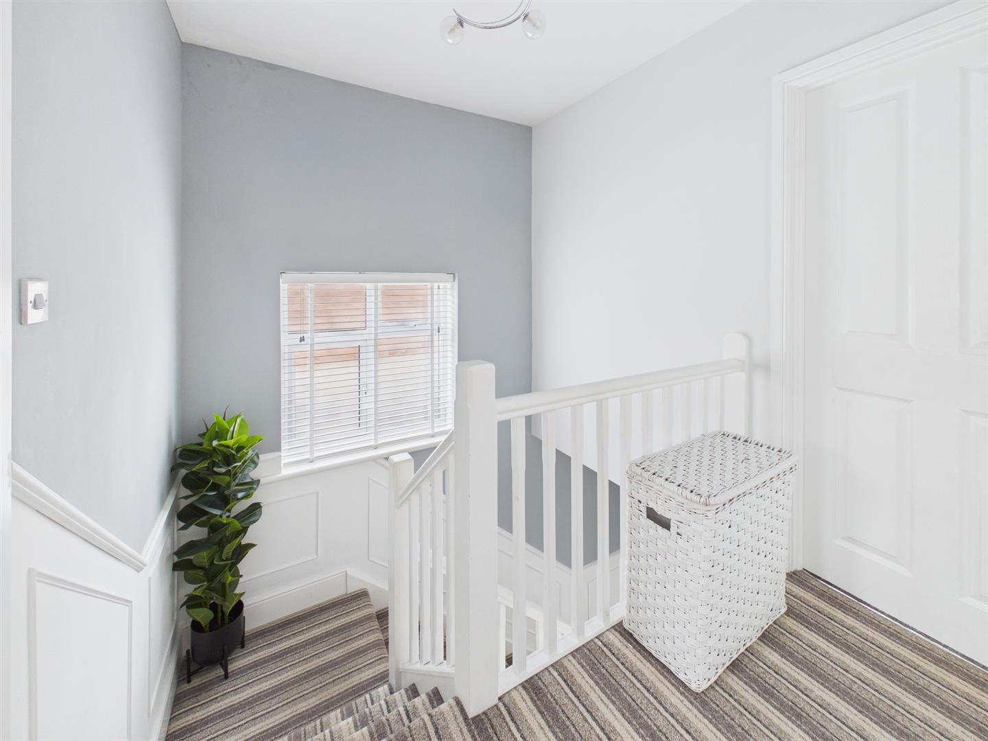 To the first floor are three bedrooms and family bathroom. Two of the bedrooms are good sized doubles, one of which benefits from fitted wardrobes. The bathroom comprises a bath, separate walk in shower, hand basin within a vanity unit, W.C. and heated towel rail. A loft hatch from the landing has a drop down ladder giving access to a partially boarded loft space.