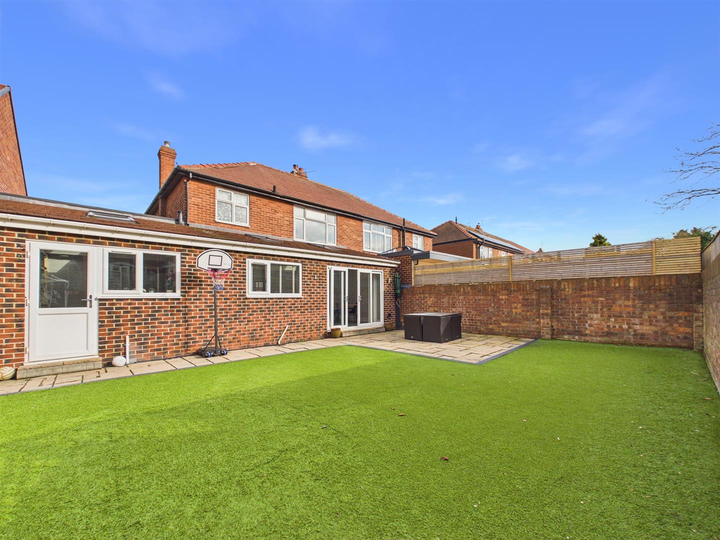 Externally to the rear is a low maintenance westerly facing garden with an artificial lawn and a paved patio. To the front is a large block paved driveway and garage.
