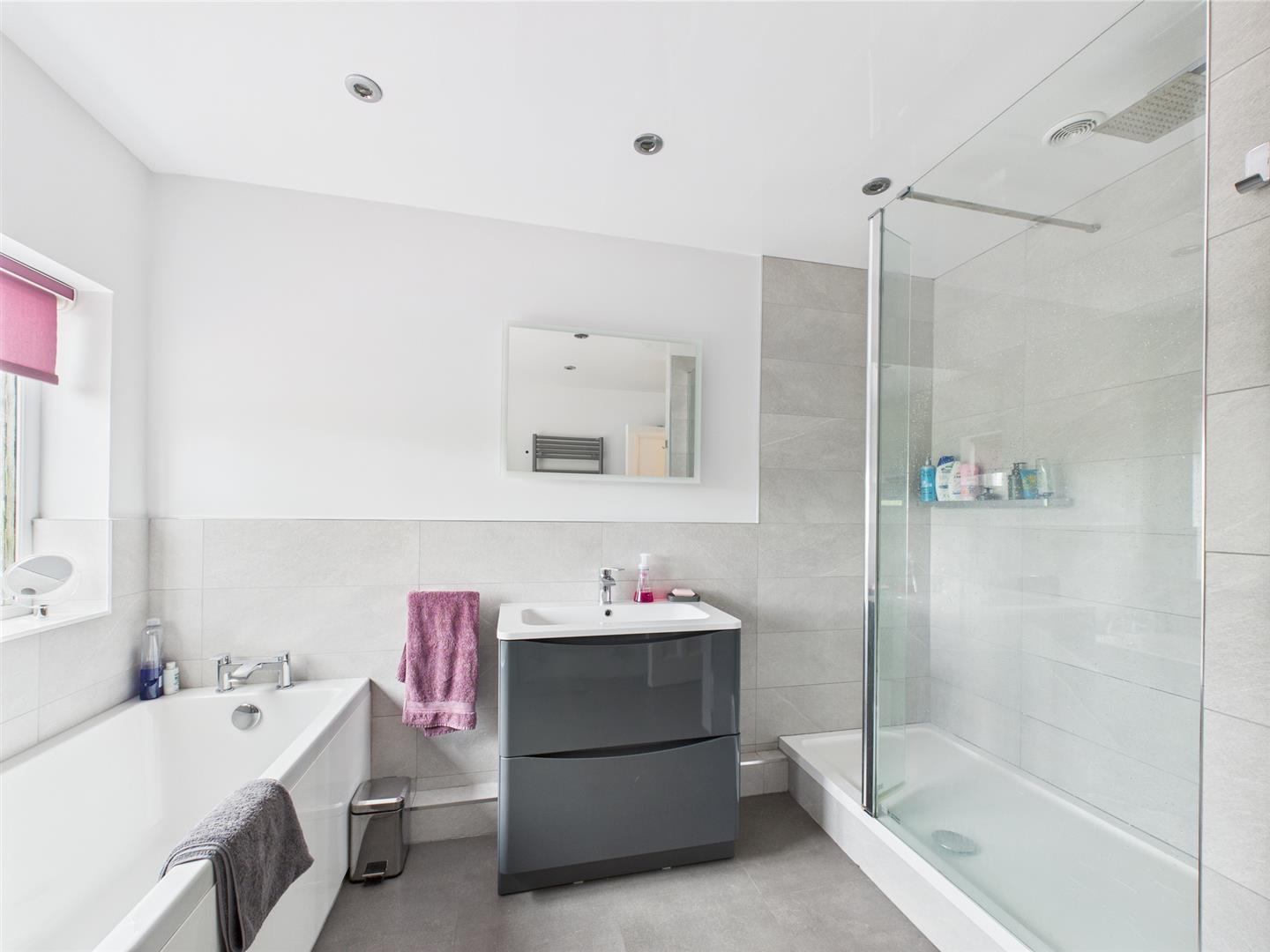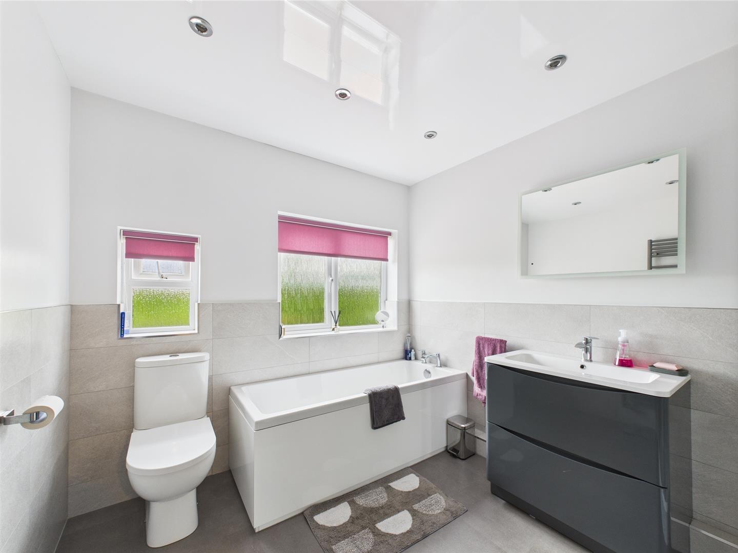 To the first floor are four well proportioned double bedrooms which all benefit from fitted wardrobes providing plenty of storage. The modern family bathroom has been tastefully designed comprising a bath, separate step in shower, W.C. hand basin housed within a fitted vanity unit and a heated towel rail.