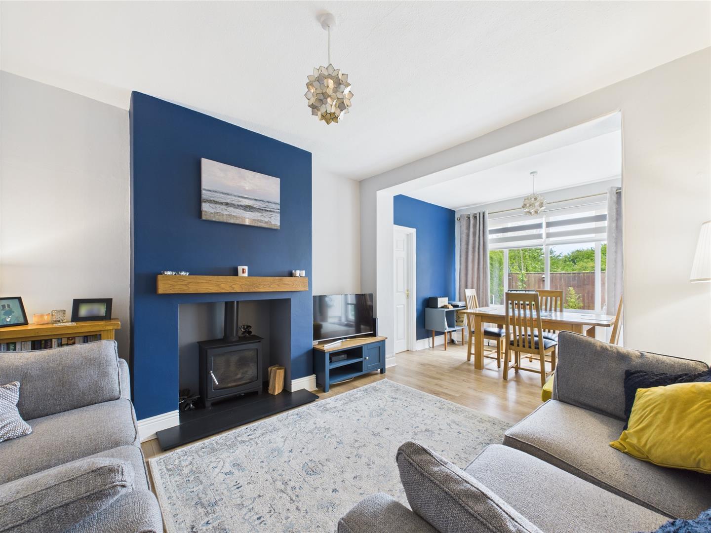 Briefly comprising: Entrance vestibule leading to a welcoming hallway. The living room features a fireplace housing a gas fire, alcove shelving and a large box bay window overlooking the front of the property. To the rear is an attractive open plan sitting/dining room leading to the kitchen. The sitting area offers a comfortable space with a log burning stove and the dining area offers views over the rear garden. A door leads to the home office which also overlooks the garden. The well equipped kitchen has a good range of fitted units, integrated appliances include a Neff induction hob, Neff oven, extractor fan, fridge freezer and plumbing for a washing machine and dishwasher. French doors open to a patio area within the rear garden. Accessed from the entrance vestibule is a separate W.C. which also offers access to the garage.