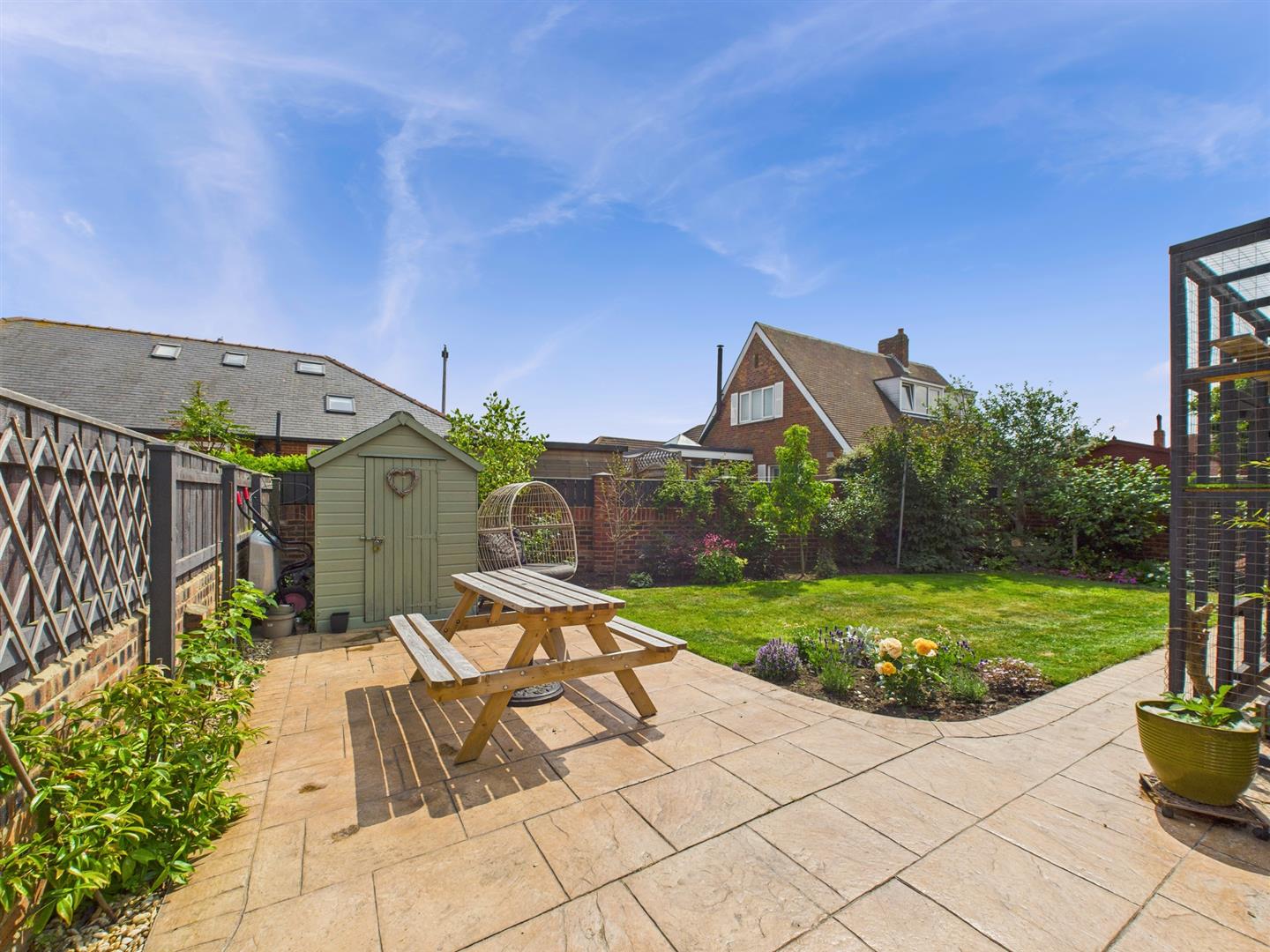 Externally to the rear is a well maintained private south facing garden laid to lawn with a patio area, timber shed, mature planting and side access to the front where there is a lawn, driveway parking and a garage.