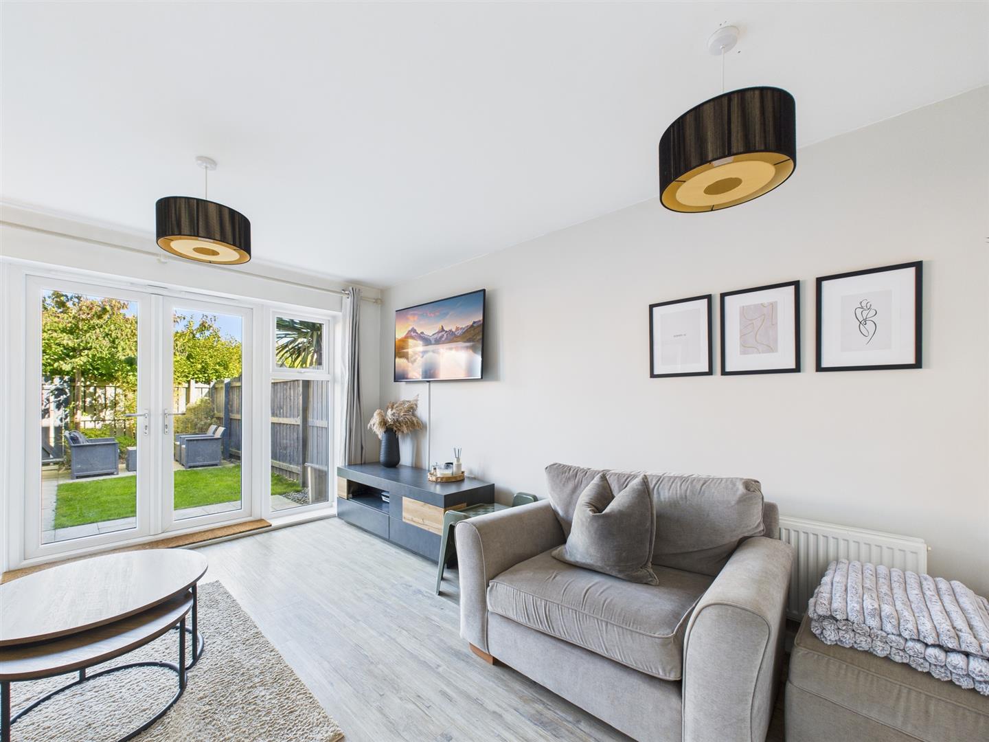 Briefly comprising: Entrance to a welcoming hallway where there are stairs to the first floor and access to the ground floor rooms. To the front is a well equipped kitchen benefitting from modern fitted wall and base units which includes an integrated gas hob, electric oven, extractor fan, fridge/freezer and dishwasher. The bright and airy living room has full height glazed windows and double doors opening out to the rear garden, there is also a built in cupboard providing additional storage. A separate W.C. is accessed from the entrance hallway.