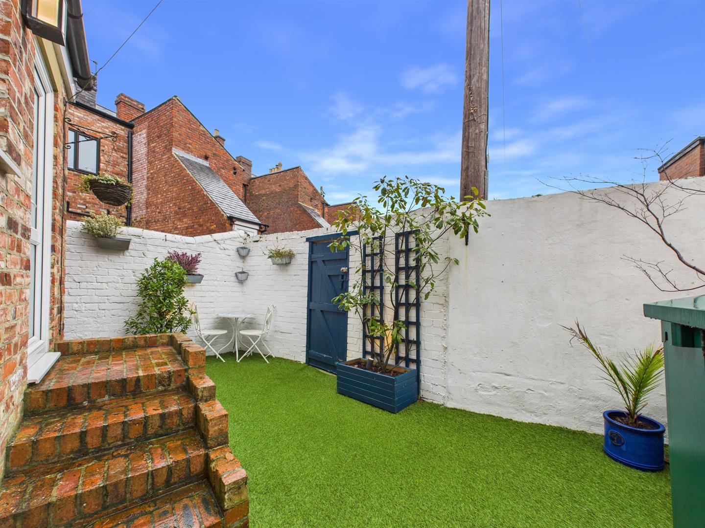 Externally to the rear is a private yard offering a pleasant seating area with an artificial lawn and access out to the rear lane. To the front is a low maintenance town garden.