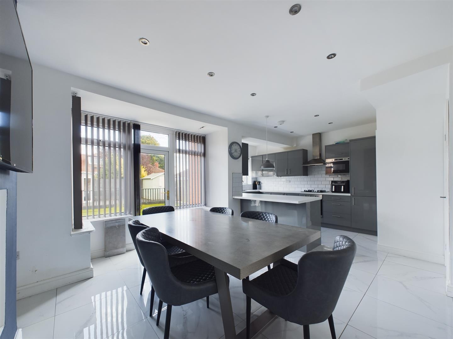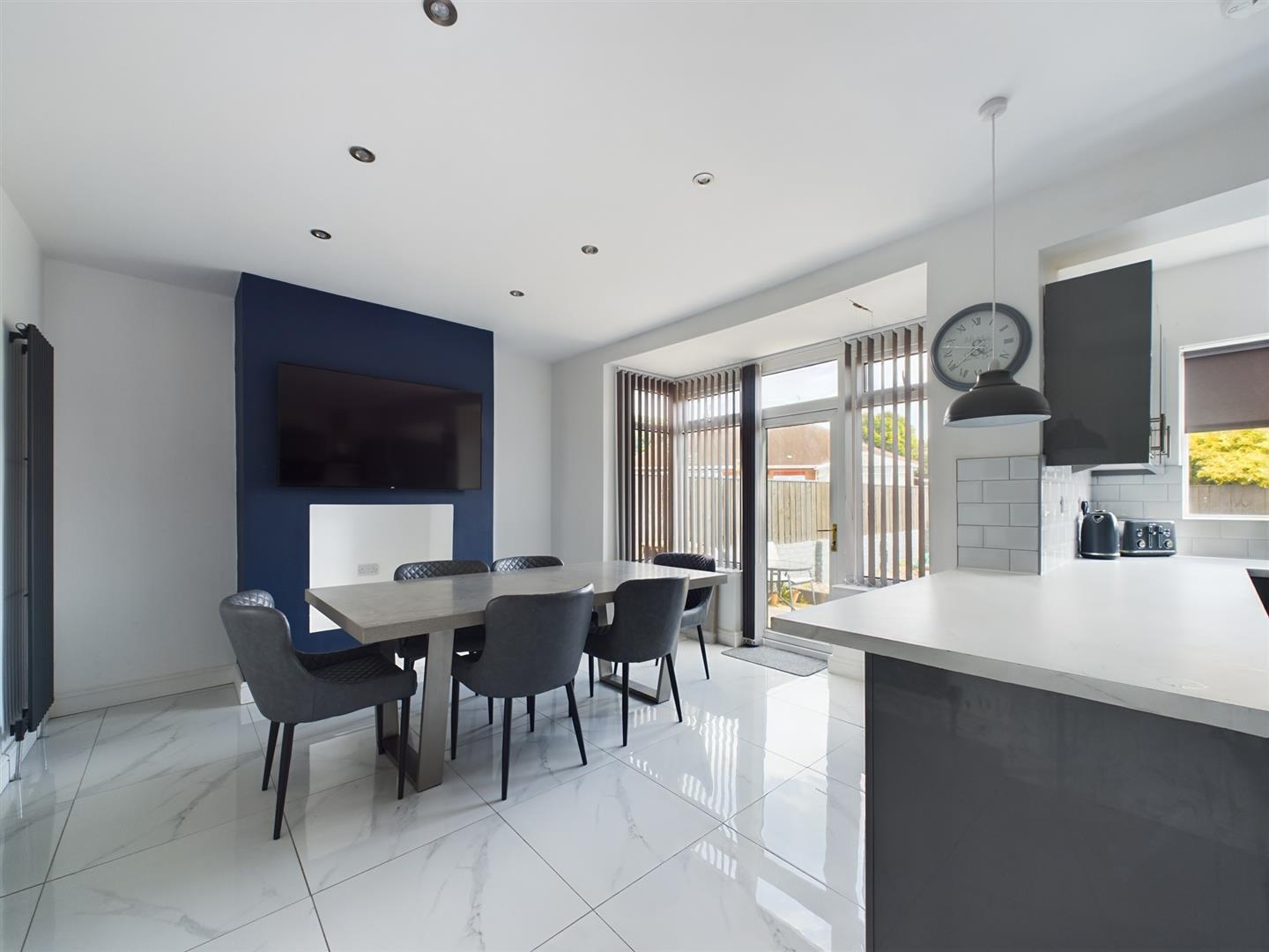 Briefly comprising: Entrance to a welcoming hallway with stairs leading to the first floor. The living room is bright and airy with a box bay window overlooking the front of the property, double doors lead to the open plan kitchen/diner. The extended kitchen/diner is a great open plan living space perfect for family living and entertaining. There are a modern range of fitted wall and base units which includes an integrated gas hob, electric oven, microwave, fridge/freezer and washing machine. A cupboard provides additional storage as well as access to a storage area which has its own entrance door to the front.