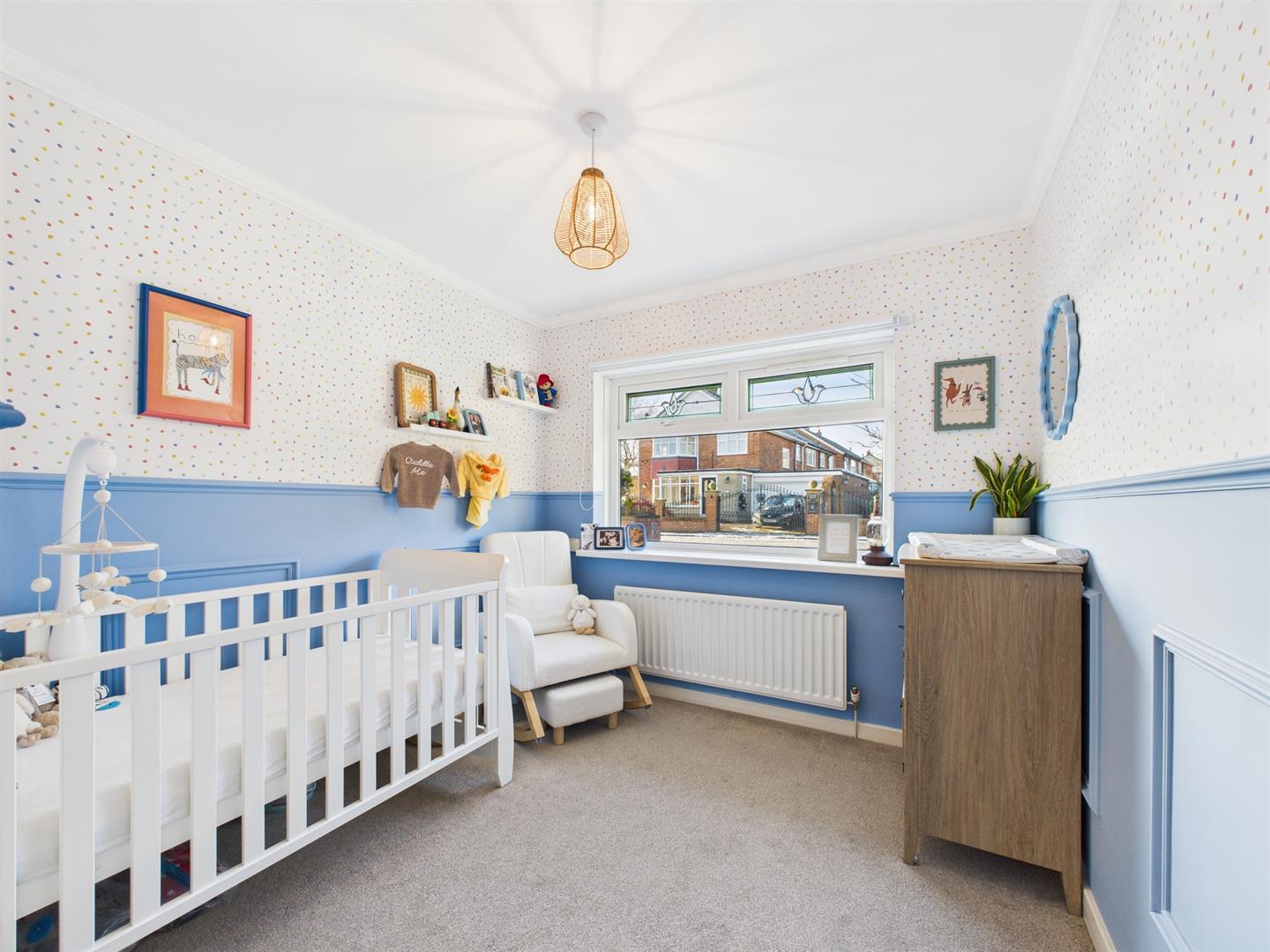 There are two well-proportioned, light-filled bedrooms. The family bathroom includes a bath with overhead shower, WC, wash basin, and heated towel rail.
