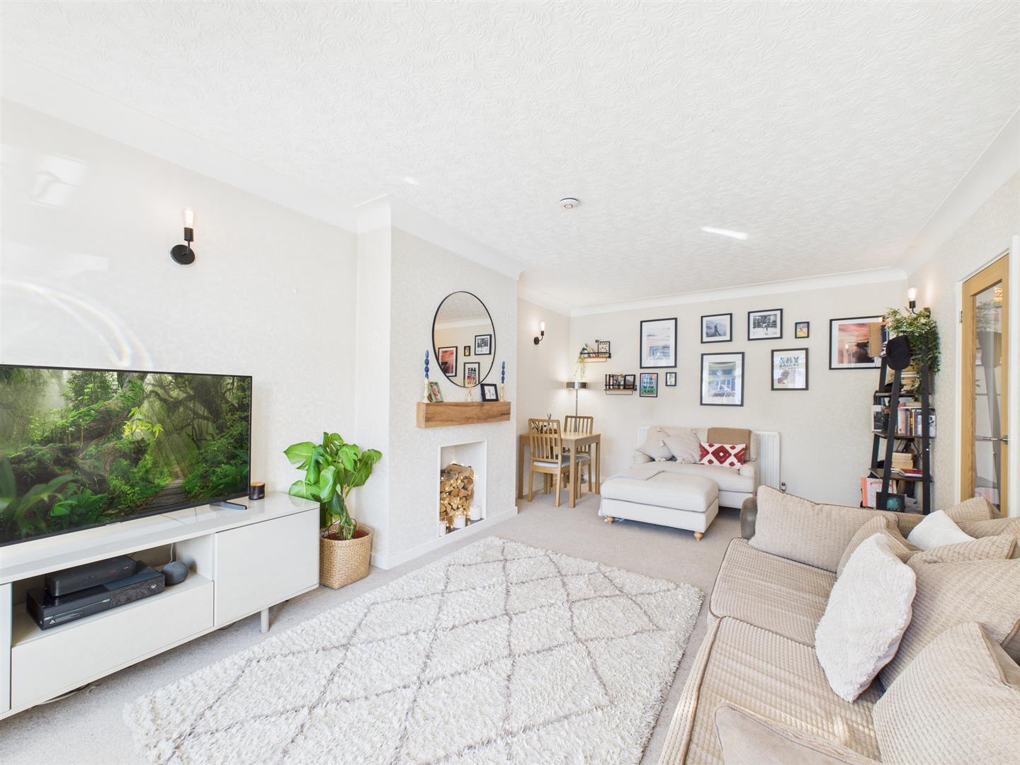 Briefly comprising: A bright and welcoming entrance hallway with storage space and access to all principal rooms. The generous living room features a large window overlooking the front of the property, neutral décor, and an attractive feature wooden beam.
